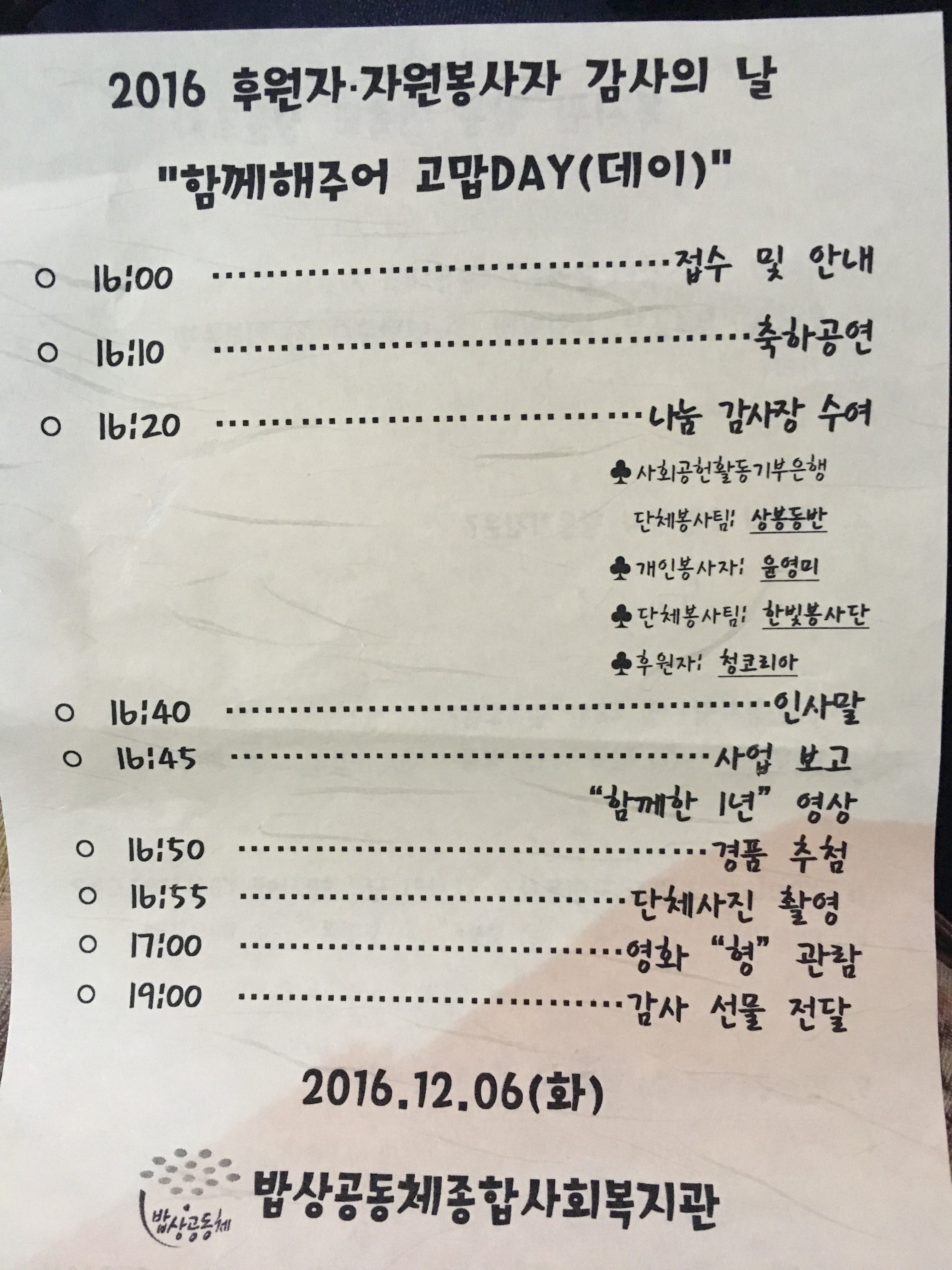2016년 후원자.자원봉사자 감사의 날 행사에 다녀왔습니다.
