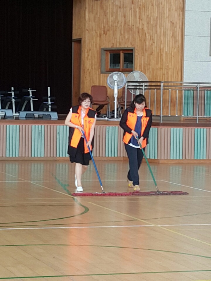 내용: 체육관 실내 바닥청소 및 입구먼지제거 쓰레기분리수거