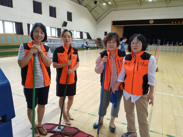 내용: 체육관 실내 바닥청소 및 입구먼지제거 쓰레기분리수거