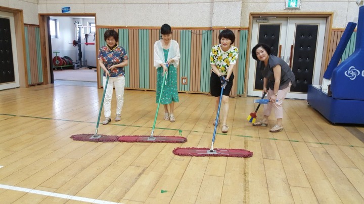 내용: 체육관 실내 바닥청소 및 입구먼지제거 쓰레기분리수거