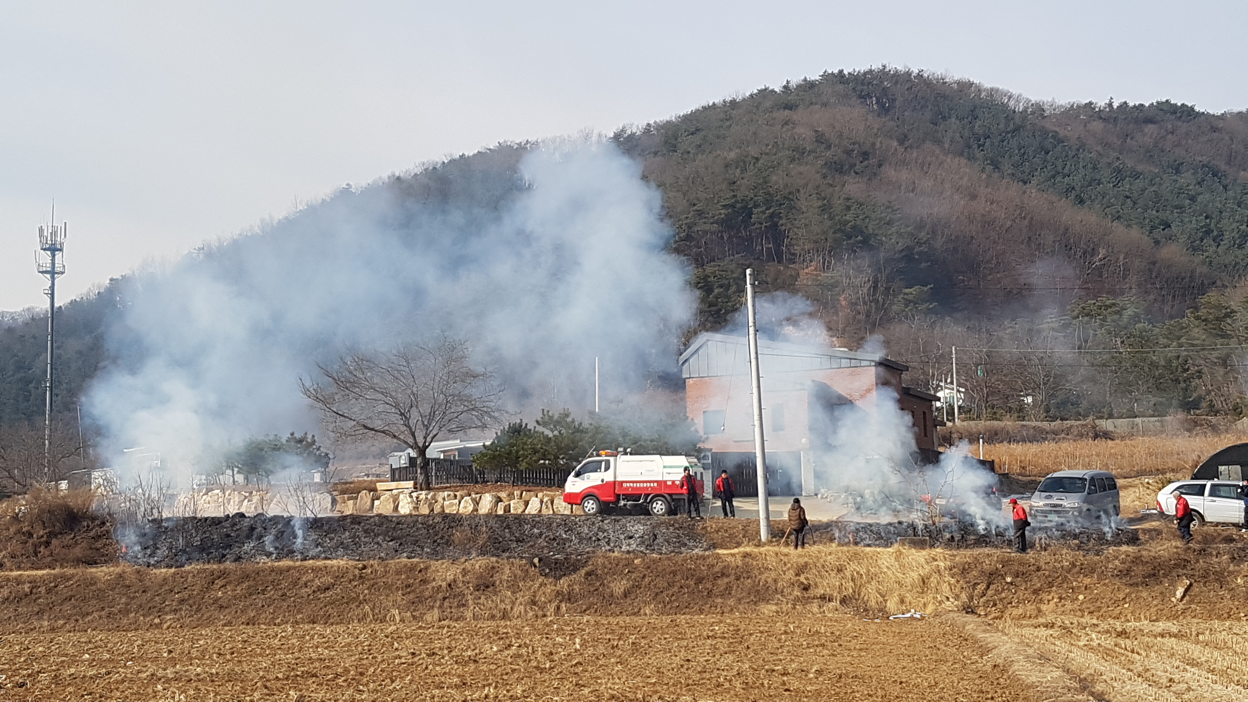 농작물 소각 후 잔화 마무리 이상 없음을 확인..................