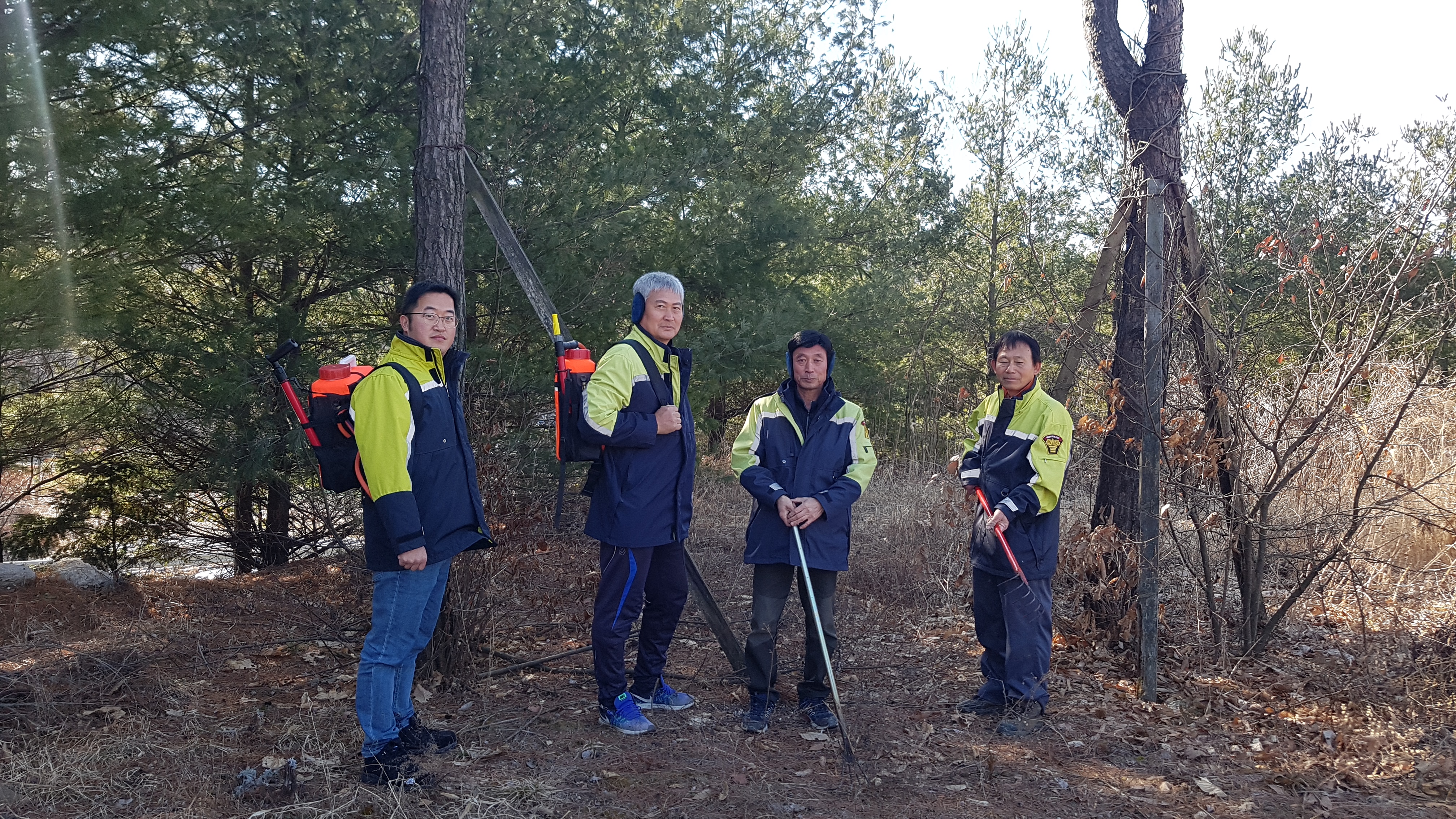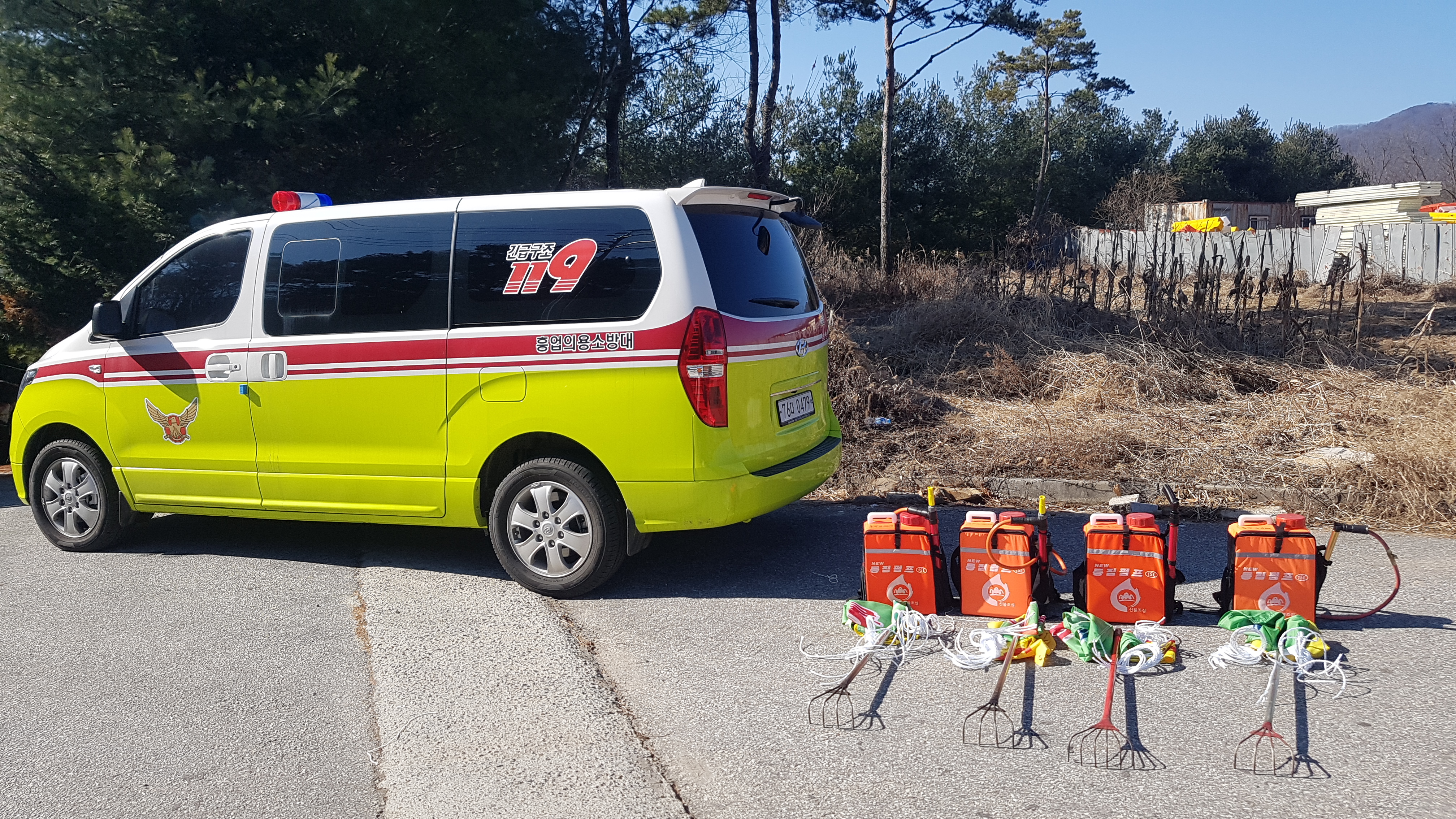 갈퀴.등짐펌프 등등 준비하여