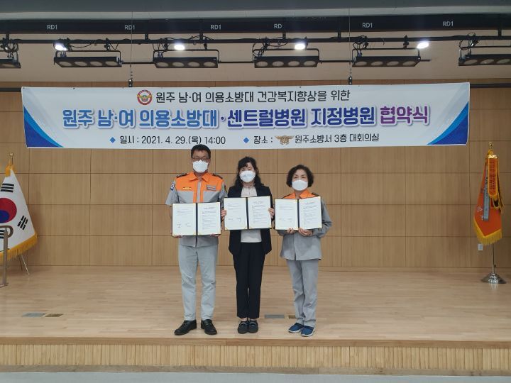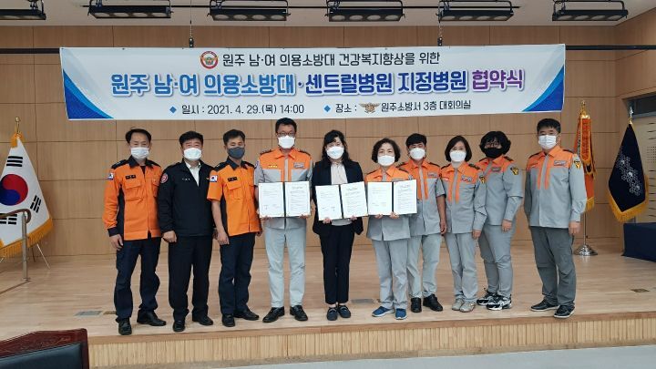 센트럴병원과 원주남여의용소방대 업무협약식을 아래와 같이 진행했습니다