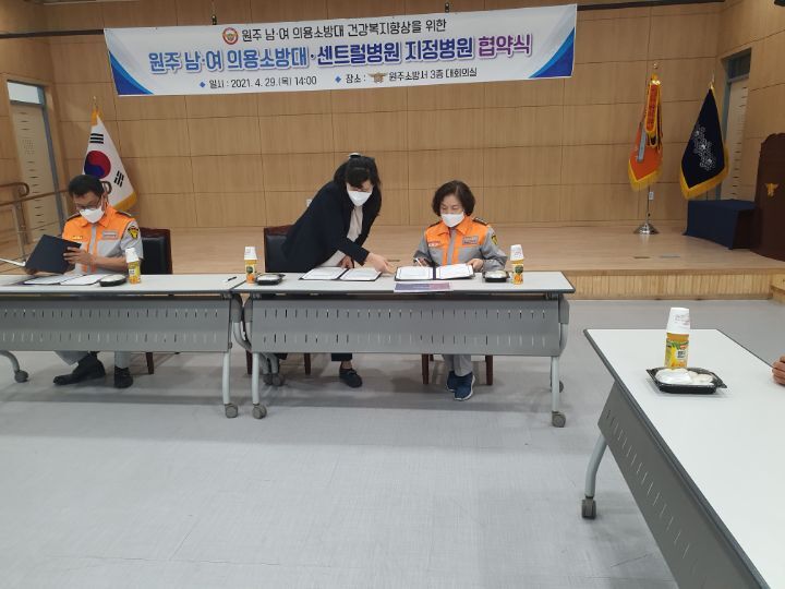 원주여성의용소방대 4월29일 원주센트럴병원과 남.여 의용소방대 업무협약식