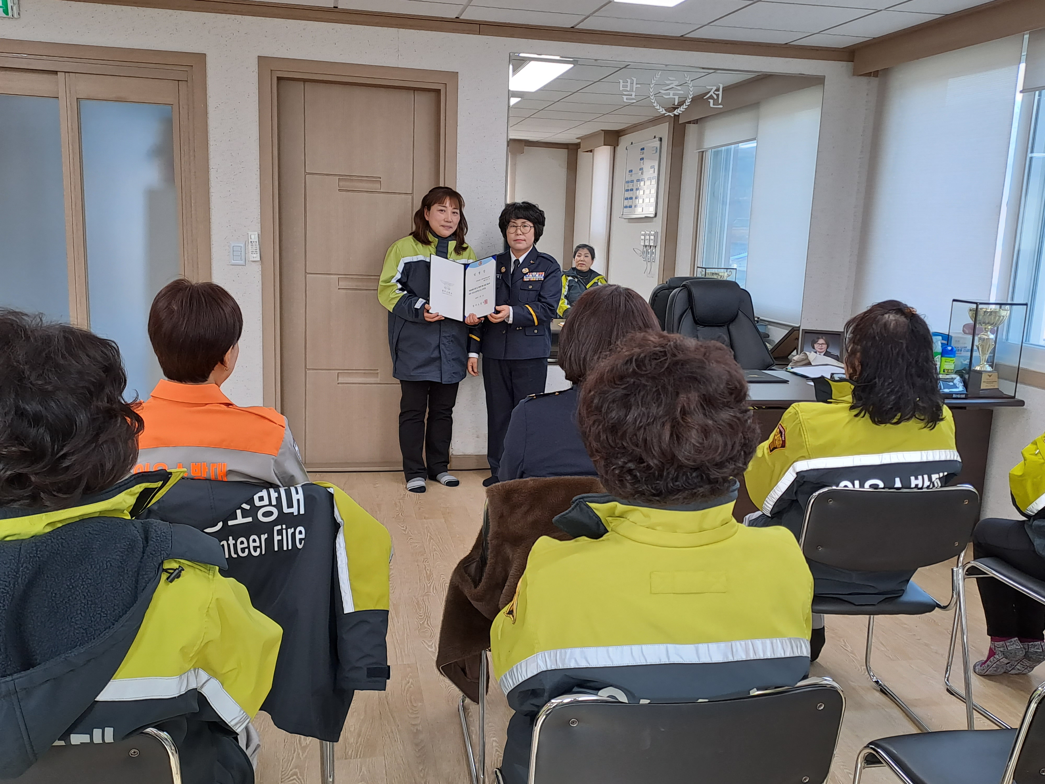 내용=> 의용소방대대장이.취임식행사참여