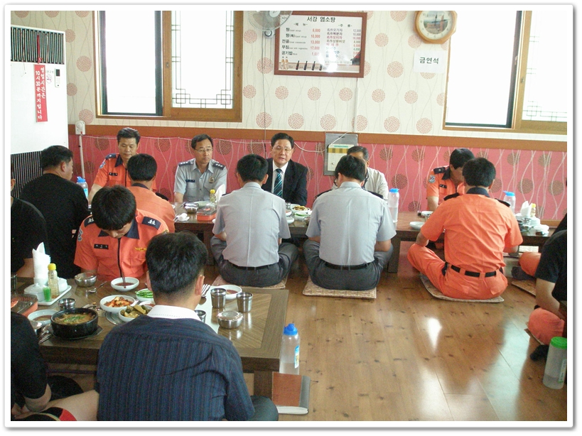 원주소방서(서장 조근희)는 7일 오후 6시 30분 시중음식점에서 소방왕선발대회 선수들의 노고를 위문하는 자리를 가졌다. 선수들의 검게 그을린 얼굴을 통해 그 동안의 피 나는 훈련 내용을 짐작할 수 있었으며, 결과 또한 가늠할 수 있었다. 이번 위문은 결전의 날에 더욱 분발할 수 있게하는 원동력이 되는 뜻 깊은 자리였다.
