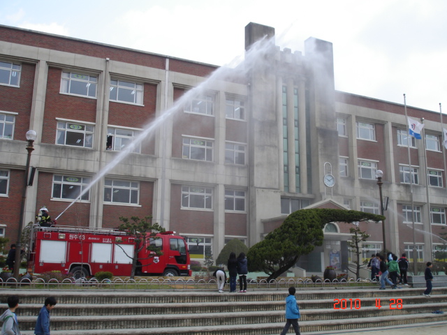 원주소방서 단구119안전센터(센터장 하성업)에서는 2010.4.29(10:00~) 단구동 남원주초교에서 초등학생을 대상으로 한 소방안전교육을 실시하였습니다. 이날 훈련은 교직원 10여명, 5학년학생 200여명을 대상으로 재난시 옥외대피훈련, 소화기 사용실습, 소방차 방수시범이 진행되었습니다.
