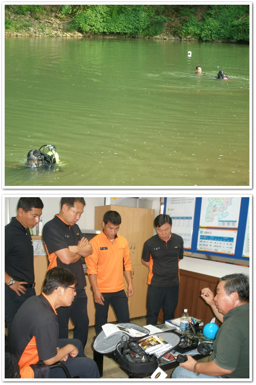 검수 장소인 간현유원지의 수중은 매우 혼탁하여 30센티 앞도 보이지 않는 상태였으나, 수중무선통신장비 교신을 통해 원거리에서 대원간의 의사소통이 원활하게 진행되었다.