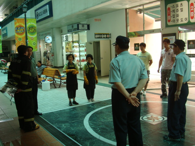 원주소방서 단구119안전센터(센터장 하성업)에서는 2010.6.29. (14:00~) 단구동 소재 "아울렛매장"에서 현지적응 소방훈련이 있었습니다. 관내 1급방화관리대상인 본건물은 의류 및 식당, 골프연습장이 입점해 있는 대형복합매장으로서 평일은 물론 휴일에도 다수의 쇼핑인파가 내왕하는 곳으로 화재시 대규모 재산과 인명피해가 우려되는 곳입니다. 관할센터와는 1km내의 근거리에 위치해 있지만 통행로상 지정체 차량으로 신속한 접근로를 숙지하는 것이 중요하였으며 건물 관계자들을 대상으로 한 기초소방시설을 활용 실제조작, 방수훈련으로 유사시 초기에 진화할수 있는 역량을 축적시켰습니다.
