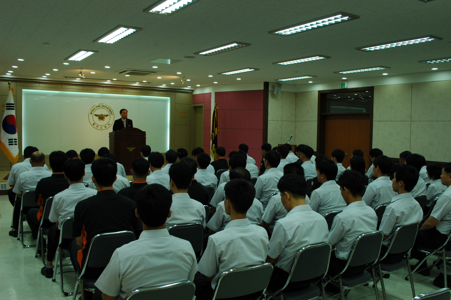 서장님 부임이후 처음 실시하는 월례조회에서 서장님은 직원들의 사기진작 우선 및 활기찬 직장분위기를 강조하시며 늘 처음처럼 한결같음 마음으로 근무해 줄 것을 말씀하셨습니다.