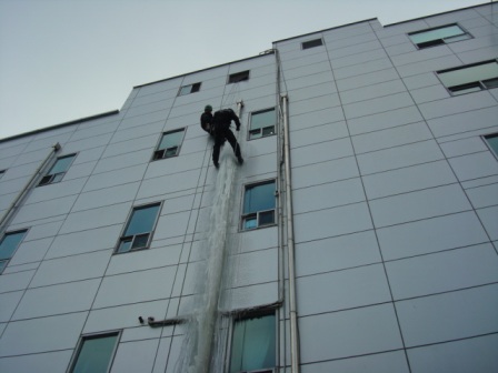원주소방서(서장 박창진) 119구조대는 2011년 01월 22일 5층 상가 외벽에 붙은 고드름을 안전하게 제거하였습니다.(날씨가 많이 추웠는지 빗물이 빠지는 배수관이 얼음으로 가득차 고드름이 정말 길게 폭포처럼 생겼네요)