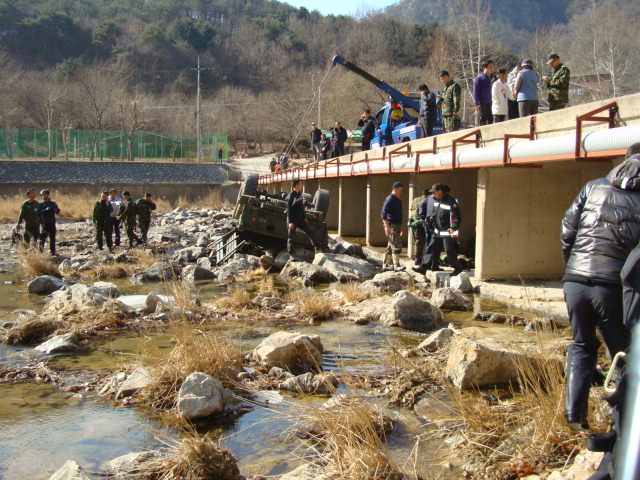 원주소방서(서장 박창진)119구조대는 2011.02.21. 간현유원지(원주시 문막읍 간현리소재)내 교량에서 군용트럭이 추락한 사고현장에 출동하여 인명구조를 하였습니다.