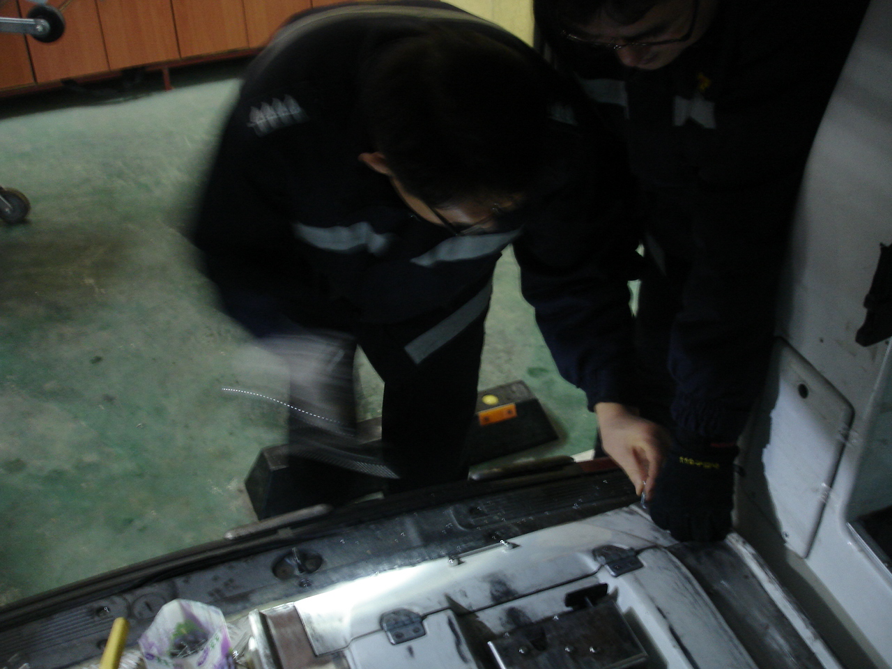오늘부터 비가 쏟아지는 관계로 차고에서 차량정비를 하였습니다.