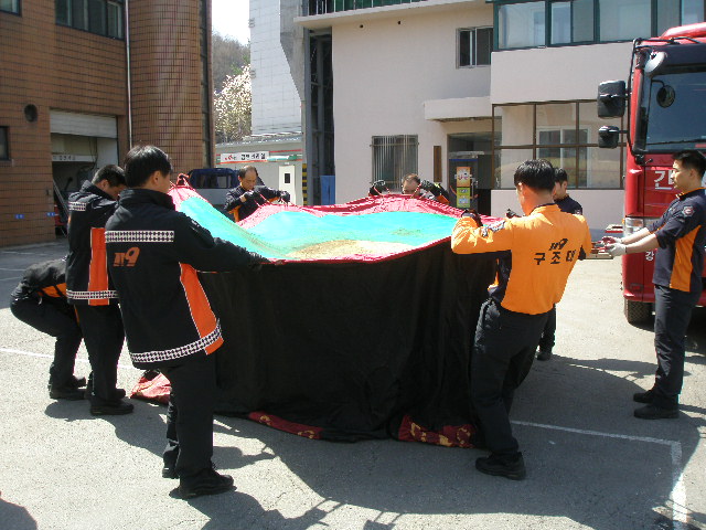 원주소방서(서장 박창진) 명륜119안전센터 에서는 구조장비조작을 시연해보았습니다. 유사시 에어매트는 시간과 인력이 많이 소모되므로 간단한 구조장비를 이용하여 긴급상황에 대처할 수 있도록 맞춰보았습니다.