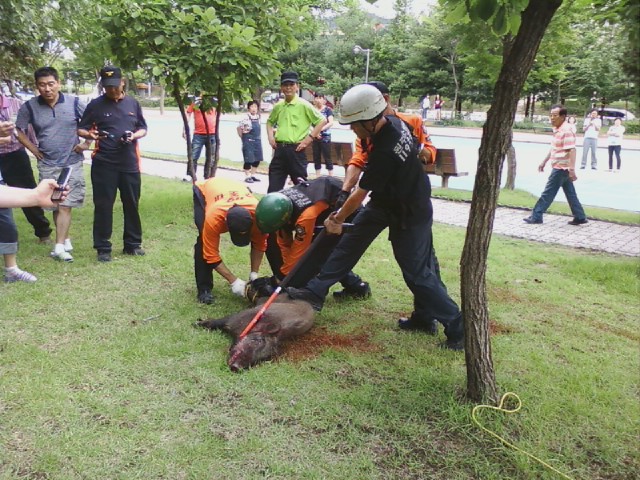 원주소방서(서장 박창진) 는 6.30(목) 15:20분경 원주시 단구동 소재 한 공원에서 멧돼지가 나타났다는 신고를 받고 출동하였습니다.