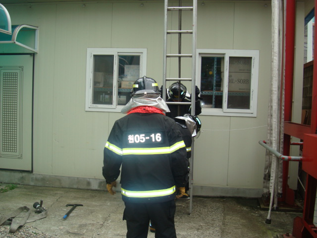 원주소방서(서장 박창진) 학성119안전센터는 화재진압 3인조법 및 사다리전개 훈련을 실시하였습니다.
