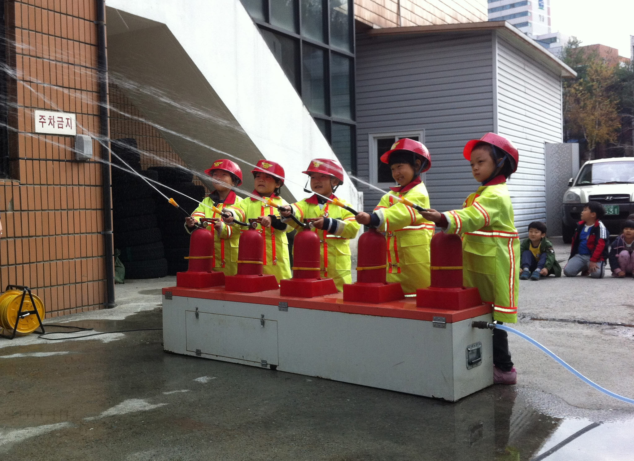 또 물소화기 체험, 옥내소화전 체험, 분말 소화기 체험, 연기피난체험, 소방차 탑승, 소방차 방수시범 관람 등 코스별로 나눠 집중적으로 체험교육을 병행했다.