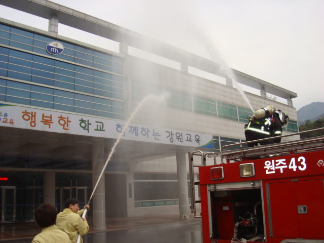 가상화점을 선정하여 신속하게 화재를 진압하는데 중점을 둔 소방훈련이었습니다.