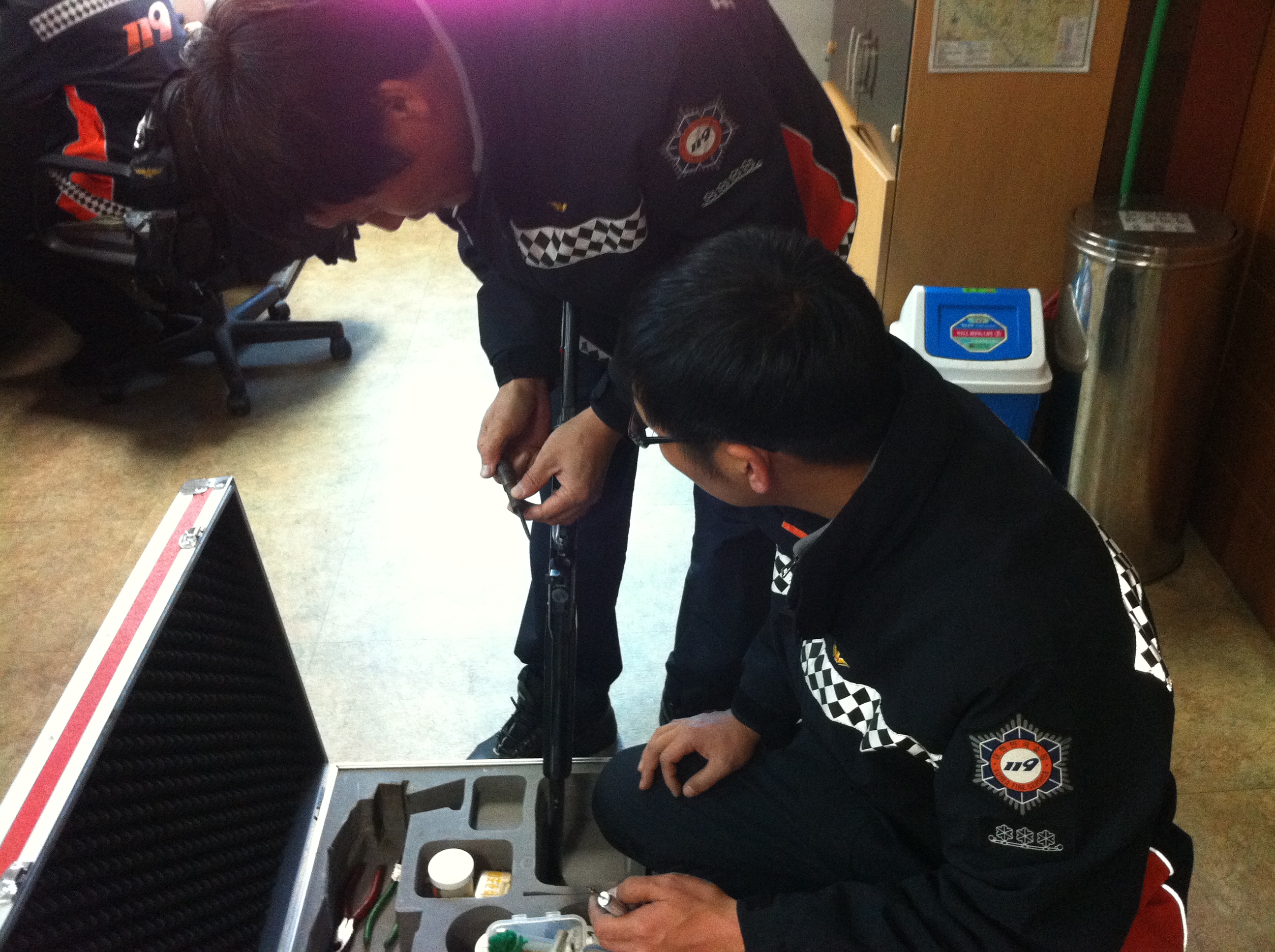 원주소방서(서장 김시균) 119구조대는 요즘 증가추세에 있는 멧돼지포획 출동에 대비하여 화약식 마취총 점검 및 사용요령·안전수칙 교육을 실시하였습니다.