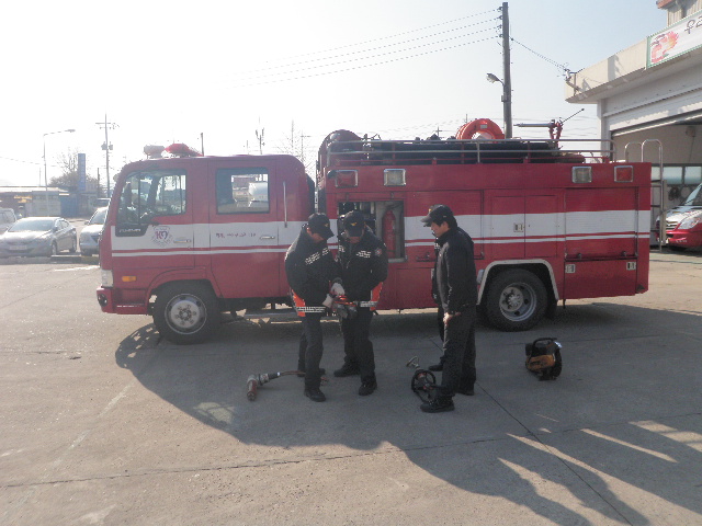 유난히 교통사고 구조출동이 많은 우리 센터에서는 평소 유압장비를 철저히 관리하고 조작훈련에 만전을 기하고 있습니다. "소방안전! 문막안전!"