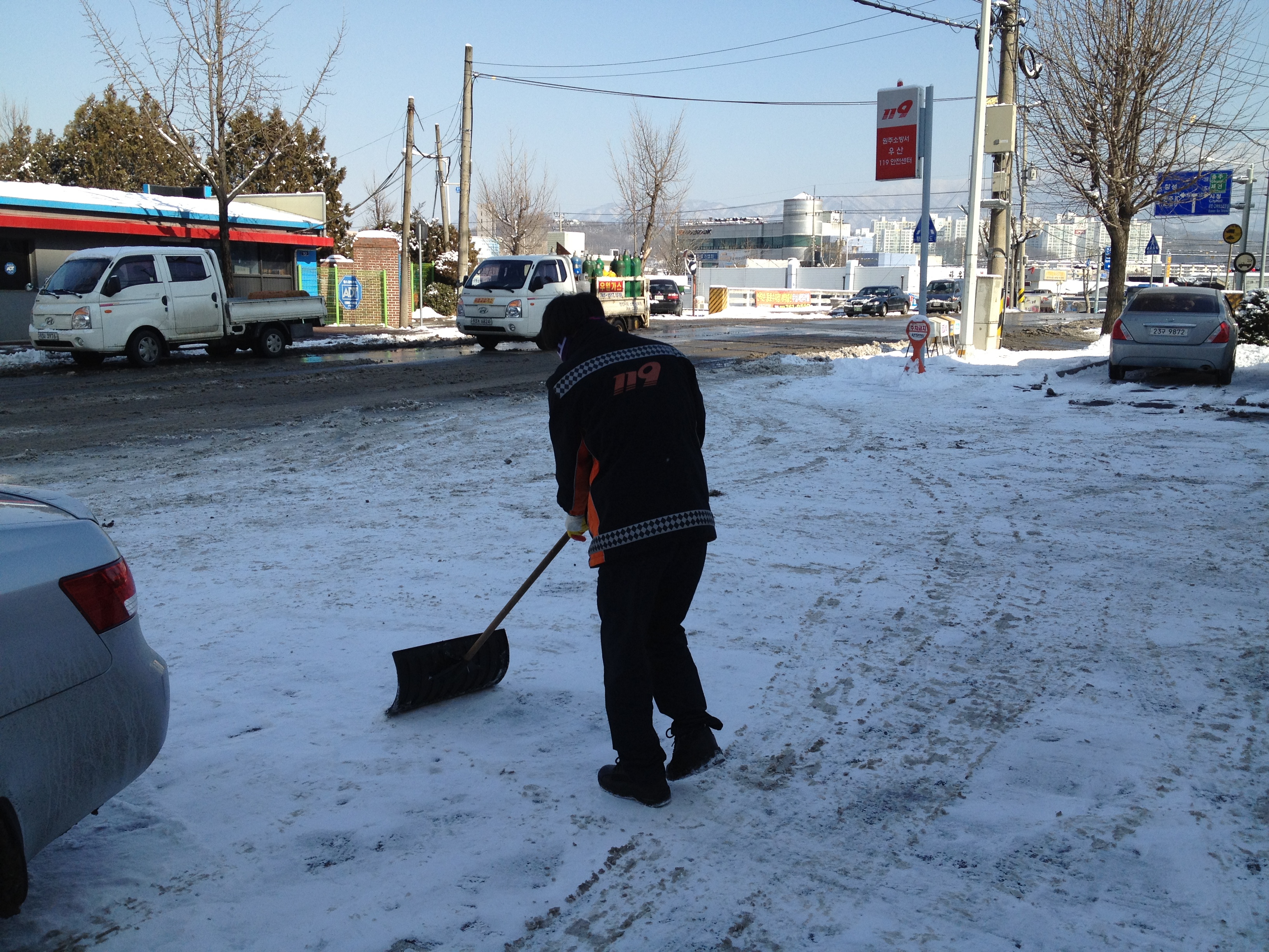 원주소방서(서장 김시균) 우산119안전센터에서는 금일 폭설로 인하여 청사주변 제설작업을 실시하였습니다. 우리 우산119안전센터에서는 화재진압장비의 관리상태를 점검해 각종 재난사고에 대비하고, 긴급 상황 발생 시 신속한 출동태세를 확립하겠습니다.