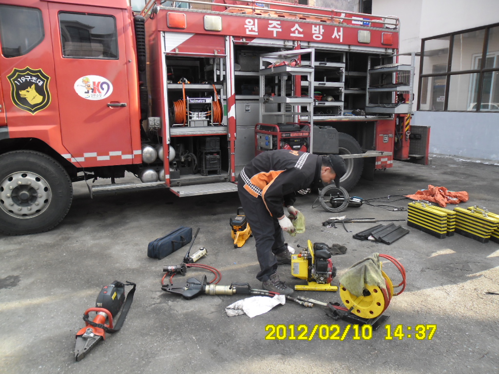 원주소방서(서장 김시균) 119구조대는 금일 구조공작차량 적재장비를 정비하였습니다. 인사이동 직원분들은 차량적재장비 숙지와 장비조작을 통해 능숙한 구조작업에 임하겠습니다.