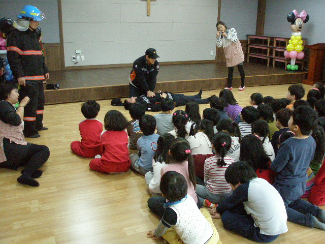 원주소방서(서장 김시균) 명륜119안전센터에서는금일 일산동에 위치한 원주유치원에서 현지적응훈련 및 유치원생 대피훈련, 소방안전교육을 실시하였습니다. 발연기를 통해 상황을 조성하여 실제 상황같은 대피훈련이 되었습니다. 아직은 어린 나이지만 소방관 아저씨들의 교육에 눈을 초롱초롱 빛내면서 듣는 아이들이 너무 사랑스러웠습니다. 명륜119안전센터는 미래의 꿈나무인 어린이들의 생명을 지키는데 앞장서겠습니다.