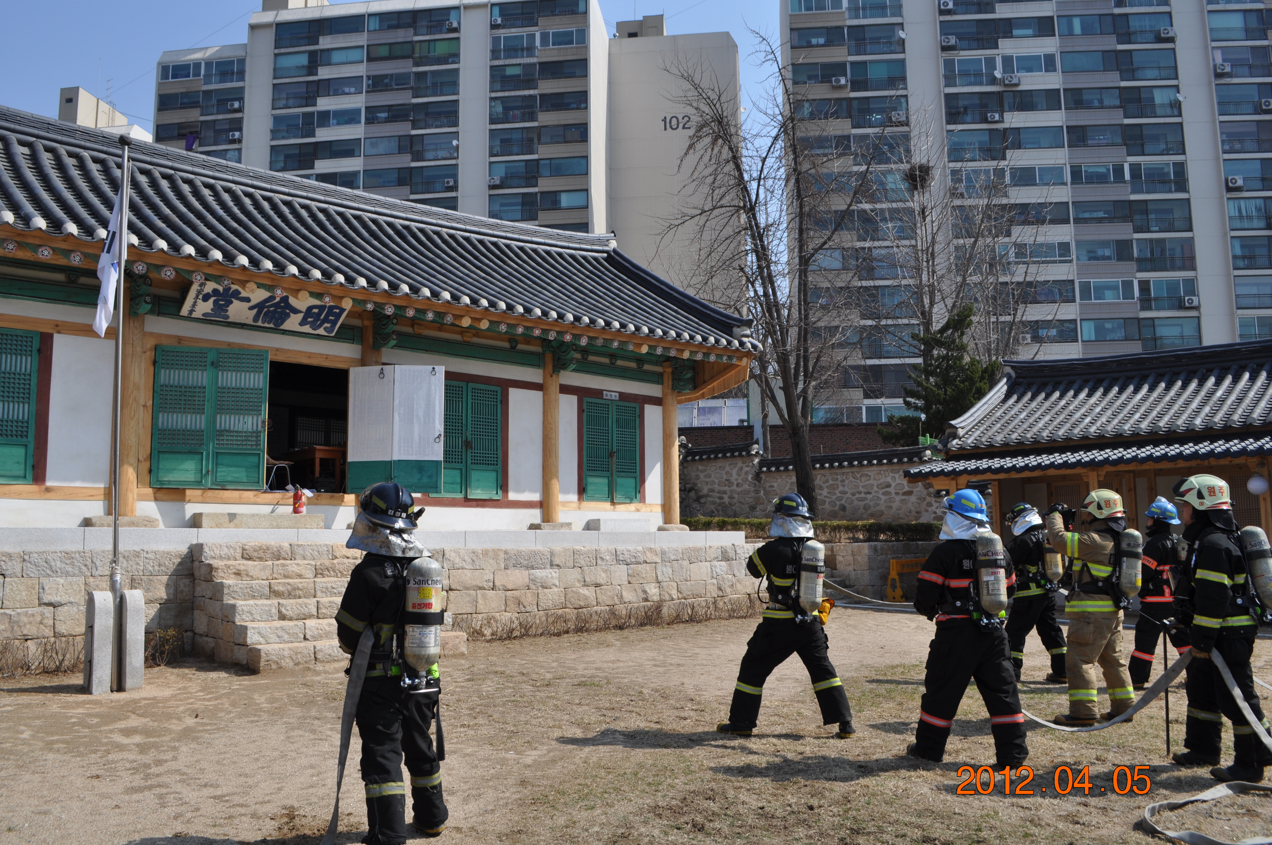 원주소방서(서장 김시균) 명륜119안전센터에서는 금일 명륜동에 위치한 원주향교에서 합동 소방훈련을 실시하였습니다. 흘러간 시간은 되돌릴 수 없듯이 수백년을 이어온 우리 원주의 고유한 문화재인 향교 역시 한번 소실되면 그 가치를 되살릴 수 없습니다. 자랑스런 원주의 문화재를 수호하는데 언제나 명륜119안전센터가 선두에 서 있겠습니다.