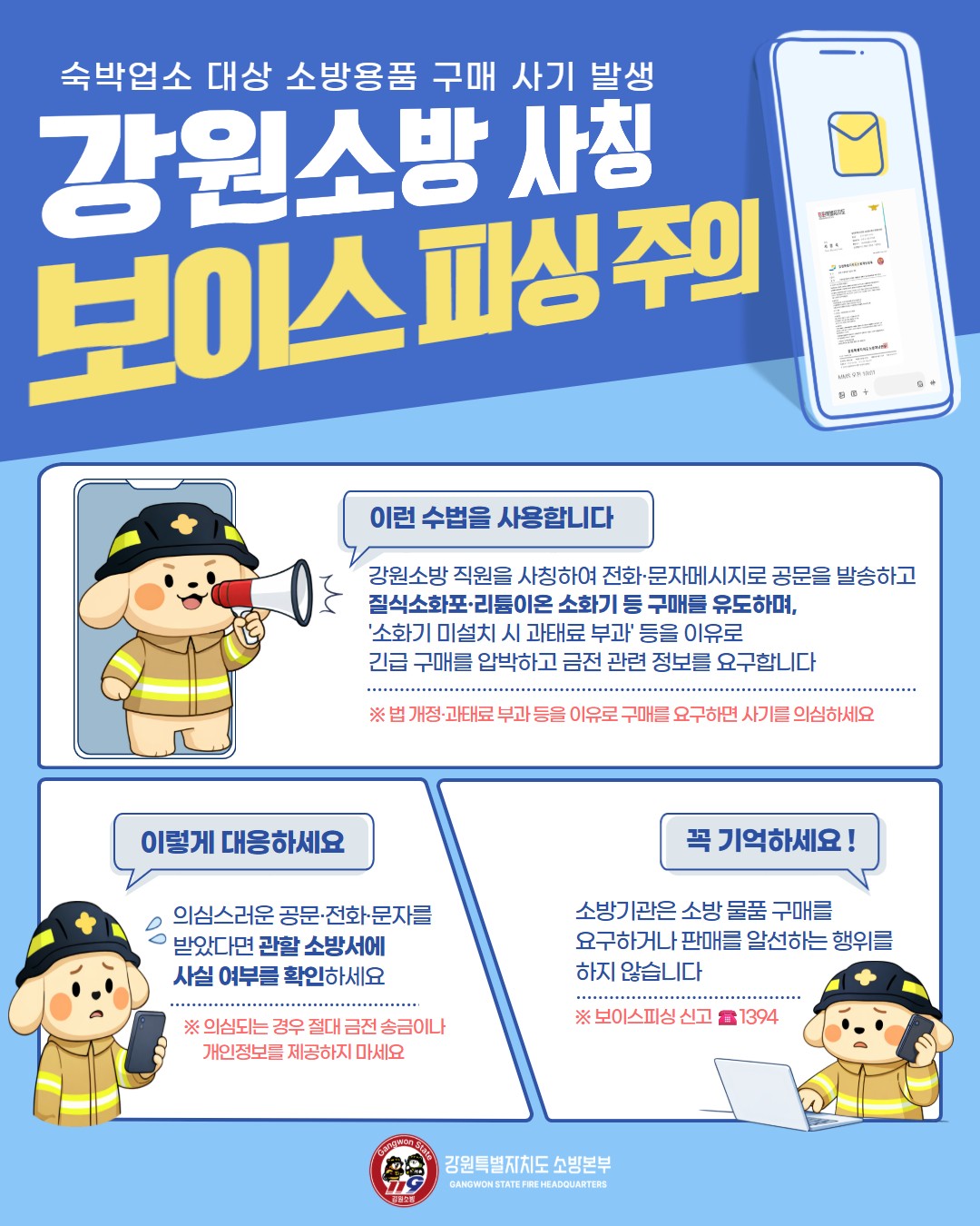강원소방 사칭 소방용품 구매 보이스피싱 주의 안내