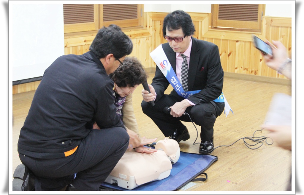 이 날 안혁씨가 강의하는 노래교실에는 약 200여명의 노인들이 참석하였으며 CPR 교육 및 체험을 할수 있는 시간을 마련하였습니다.
