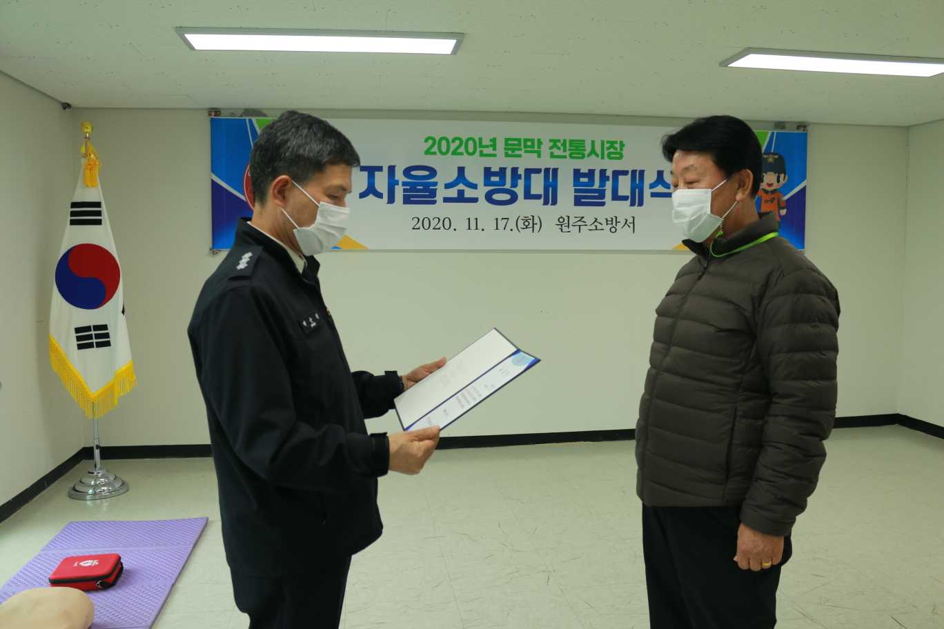 원주소방서(서장 이기중)는 17일 문막119안전센터에서 문막 전통시장 자율소방대 발대식을 개최했습니다.