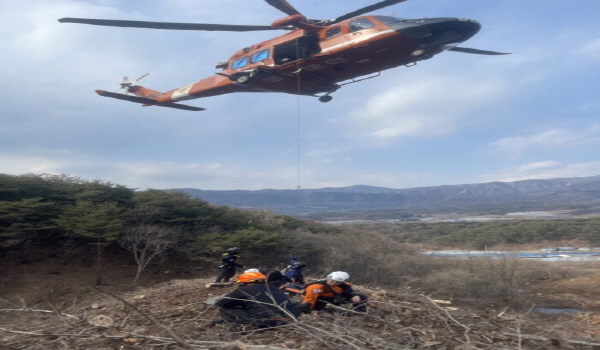 양구소방서, 양구군 동면 팔랑리 야산 벌목작업 중 부상 당한 요구조자 구조