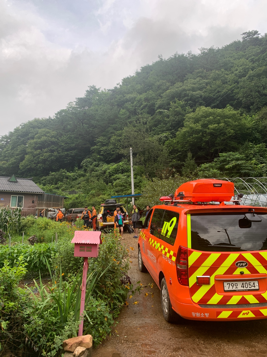 119에 신고하여 구조요청을 의뢰하였으나 비가 넘 많이 내려 진입이 어렵다는 말씀 ㅠㅠ