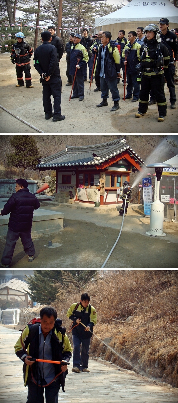 영월소방서(서장 김남백) 주천119안전센터는 관내 소방차량 진입불가 지역인 법흥사의 적멸보궁을 대상으로 진압대원 현지접근, 자위소방대와 의용소방대의 조기투입, 자체소방설비 활용에 따른 신속한 화재진압 등 현지적응훈련을 실시하였습니다.