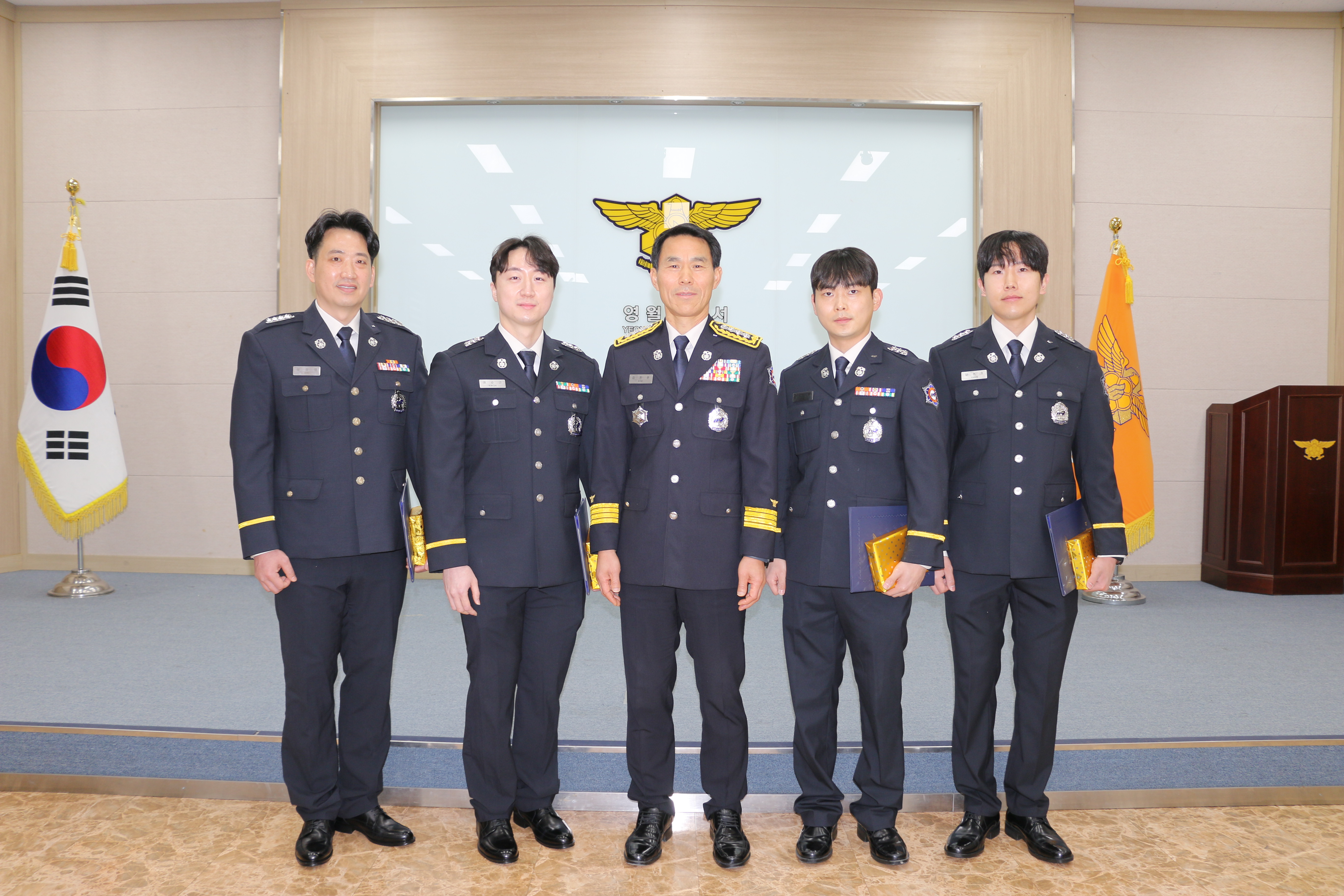 영월소방서는 본서 대회의실에서 소방장으로 승진한 ▲김찬영 소방공무원과 소방교로 승진한 ▲권순근 ▲이지훈 ▲양현호 소방공무원 근속승진자 4명에 대해 임용장 및 계급장 수여식을 개최했습니다.
