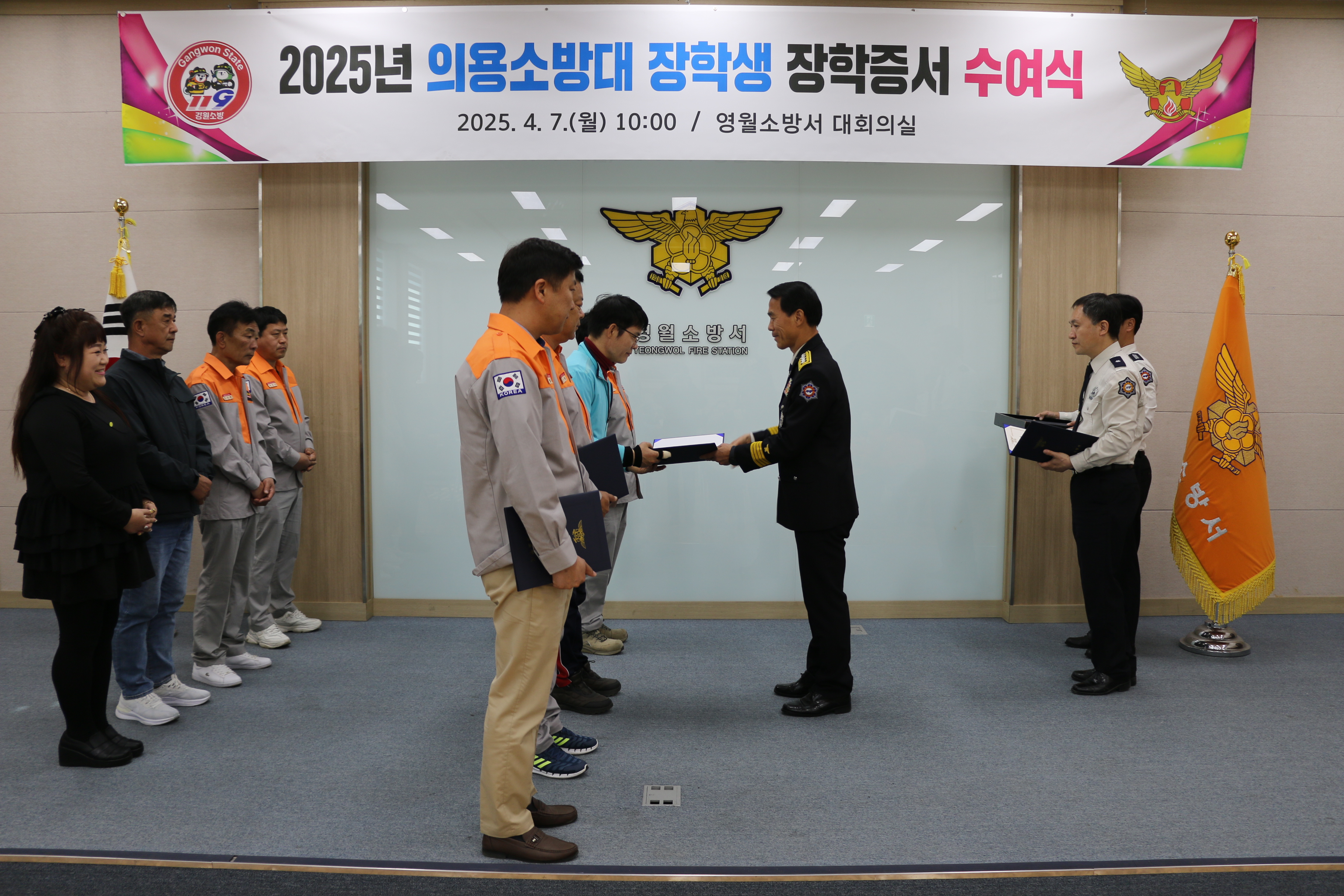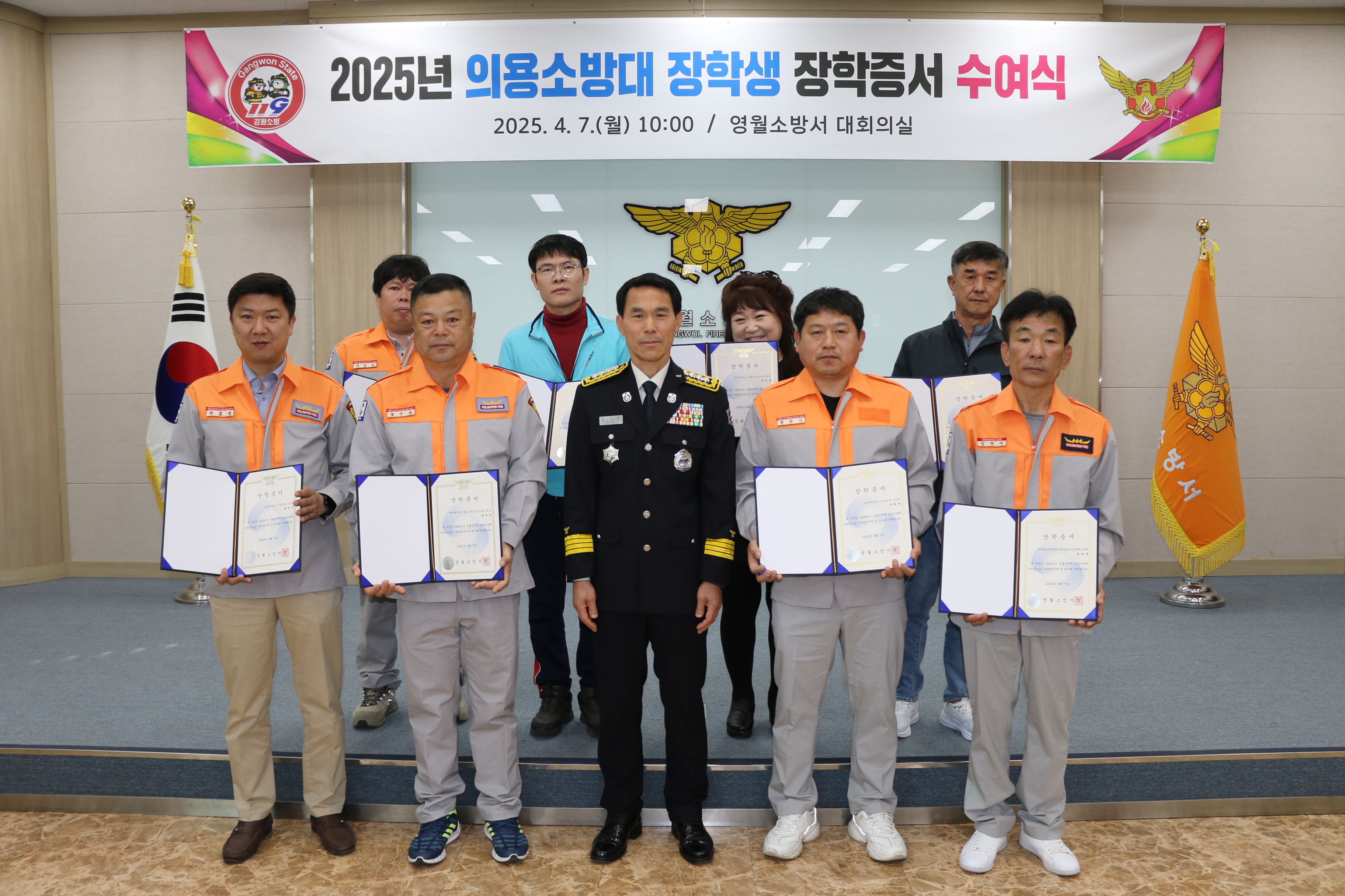 | 1273 | 의용소방대 장학생 장학증서 수여식 (25년 4월 7일) | 영월 | 2025-04-07 | 350 | |