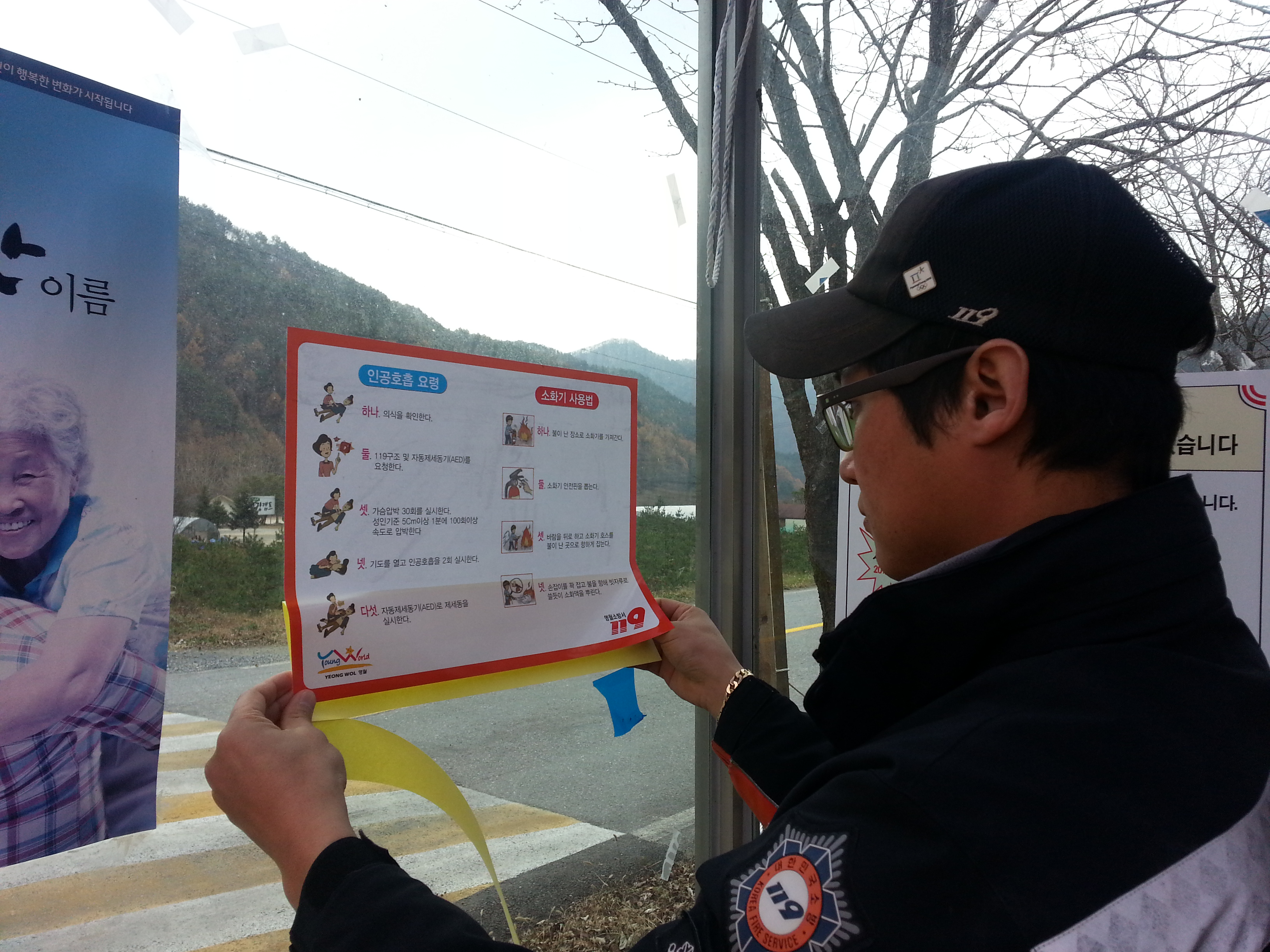 | 986 | 농촌 버스정류장 간이부스내 심폐소생술 및 화재예방 포스터 설치 | 주천119안전센터 | 2013-11-14 | 1256 | |