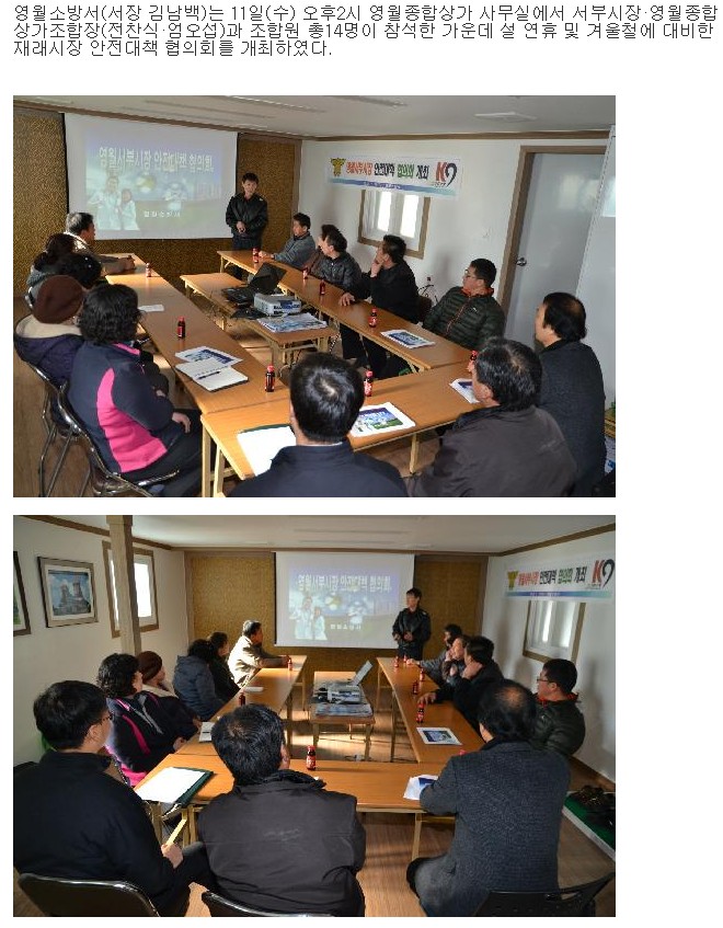 | 549 | 영월군 재래시장 안전대책 협의회 개최(1. 11) | 예방 | 2012-01-11 | 793 | |