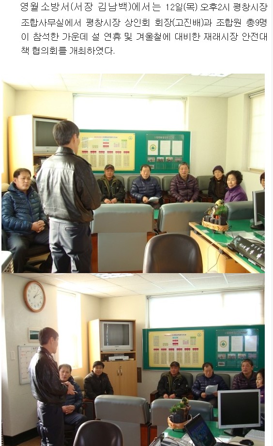 | 555 | 평창군 재래시장 안전대책 협의회 개최(1. 12) | 예방 | 2012-01-12 | 807 | |