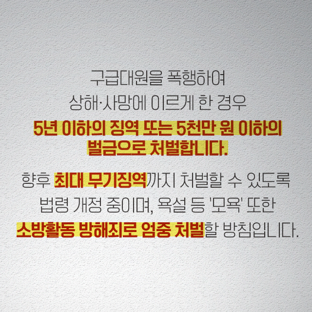 구급대원이 안전하게 구급활동을 할 수 있도록 다함께 사회적 분위기를 만들어주세요