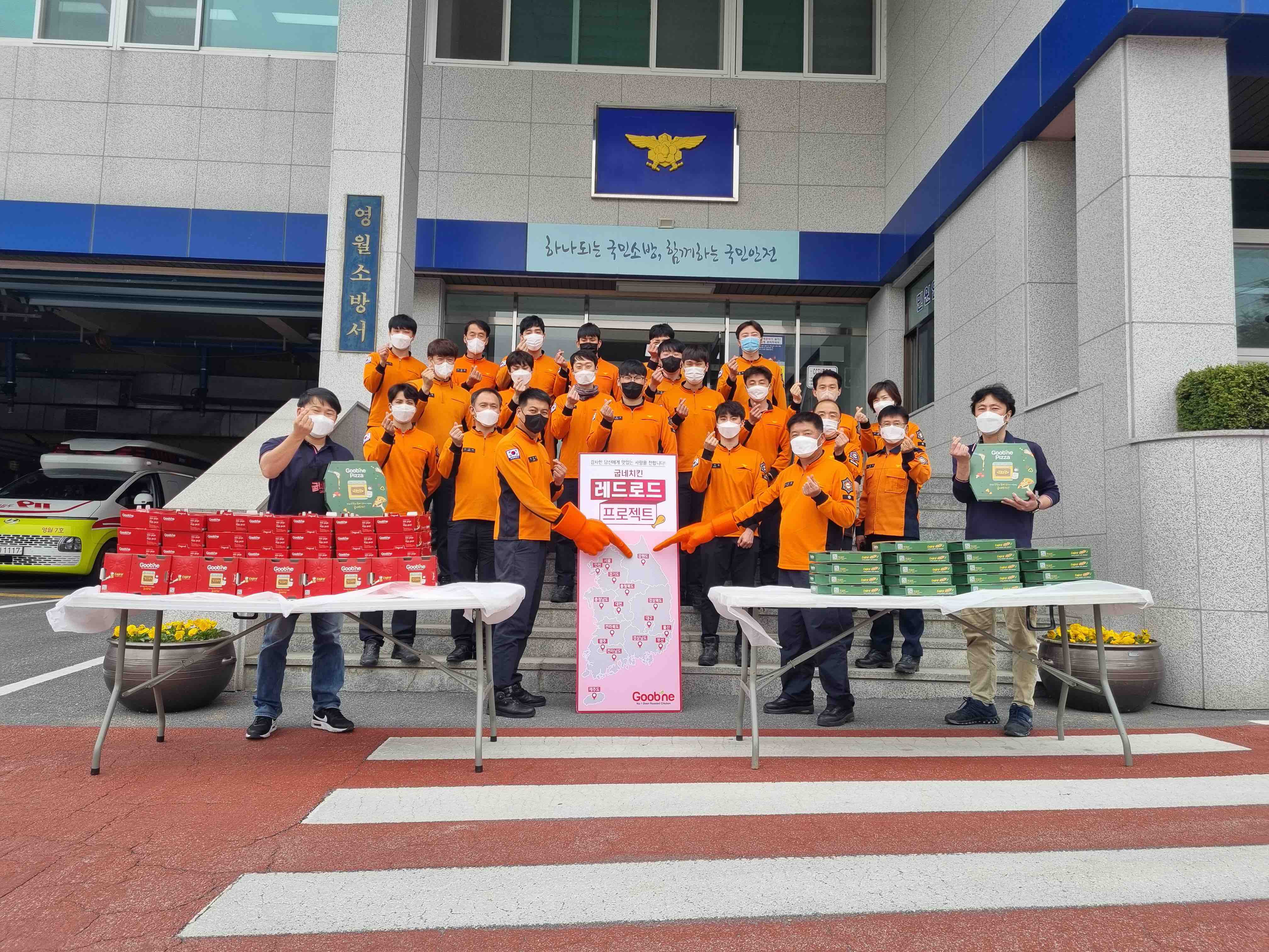 □ 대한민국재향소방동우회와 굽네치킨 후원의 레드로드 프로젝트 간식차는 굽네 오리지널 치킨 50박스와 찹찹피자 20판을 제공했다.