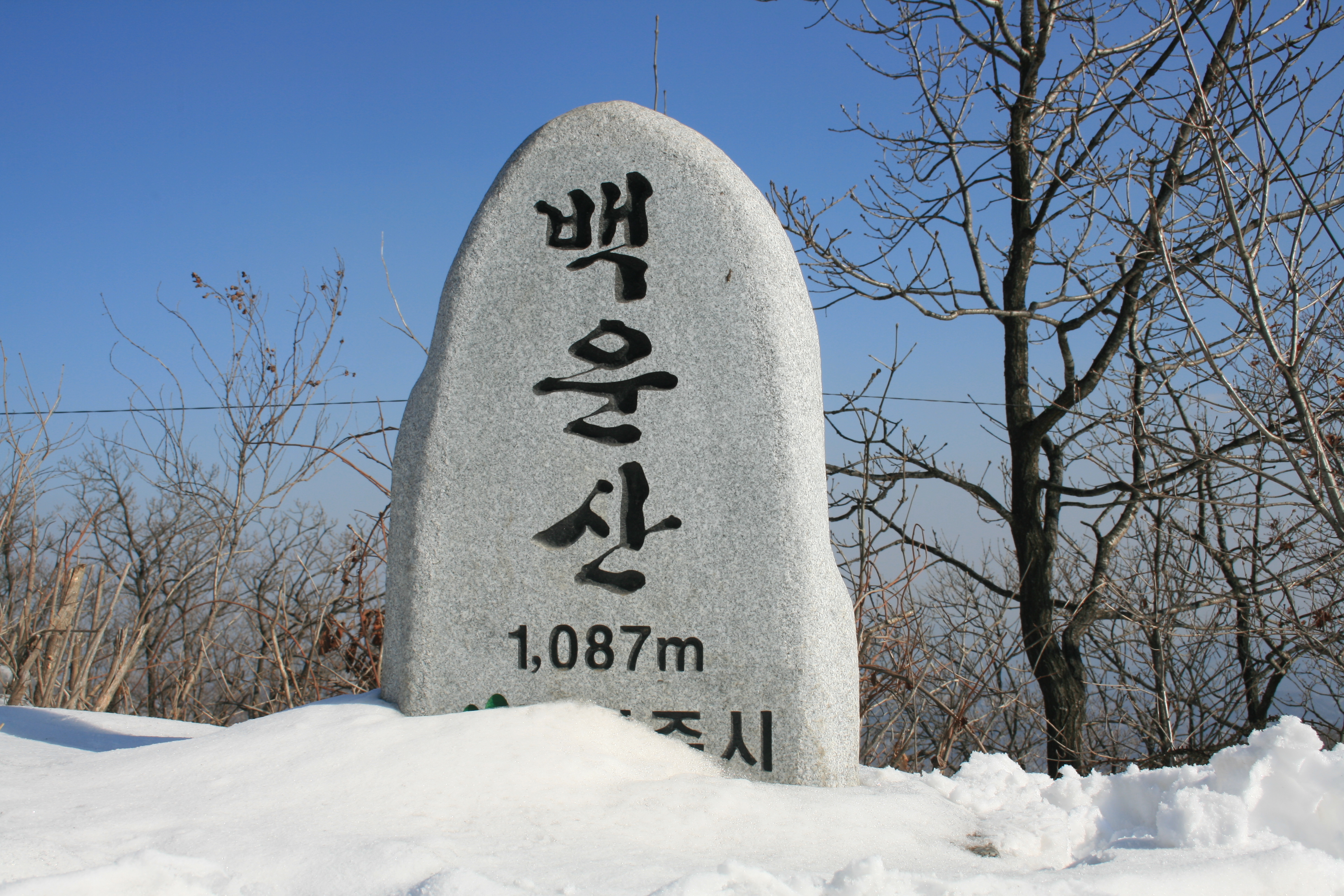 지난 주말 원주시 판부면 서곡리에 위치한 "백운산"에 다녀왔다. 오전에 집안일 관계로, 오후에 올랐는대,,원주시내서 흥업방면과 제천방면 중간기점으로 보면 높이 우뚝솟은 중계소안테나가 보이는 산이 "백운산"이다. 몇년전에 "백운산 자연휴양림"이 조성되면서 휴양림입구에서 주차료조로 일금 1,000원을 무조건 받는다....정상옆 백운산 중계소에는 군인들이 24시간 근무를 서는데 그 중계소에 원주소방서 무선망을 책임지는 소방중계소도 같이 있다....정상가는 길에 발목까지 묻히는 흰눈을 밟으면서,,,,,,나혼자만의 산행의 묘미를 한껏 느낀 산행이었다.