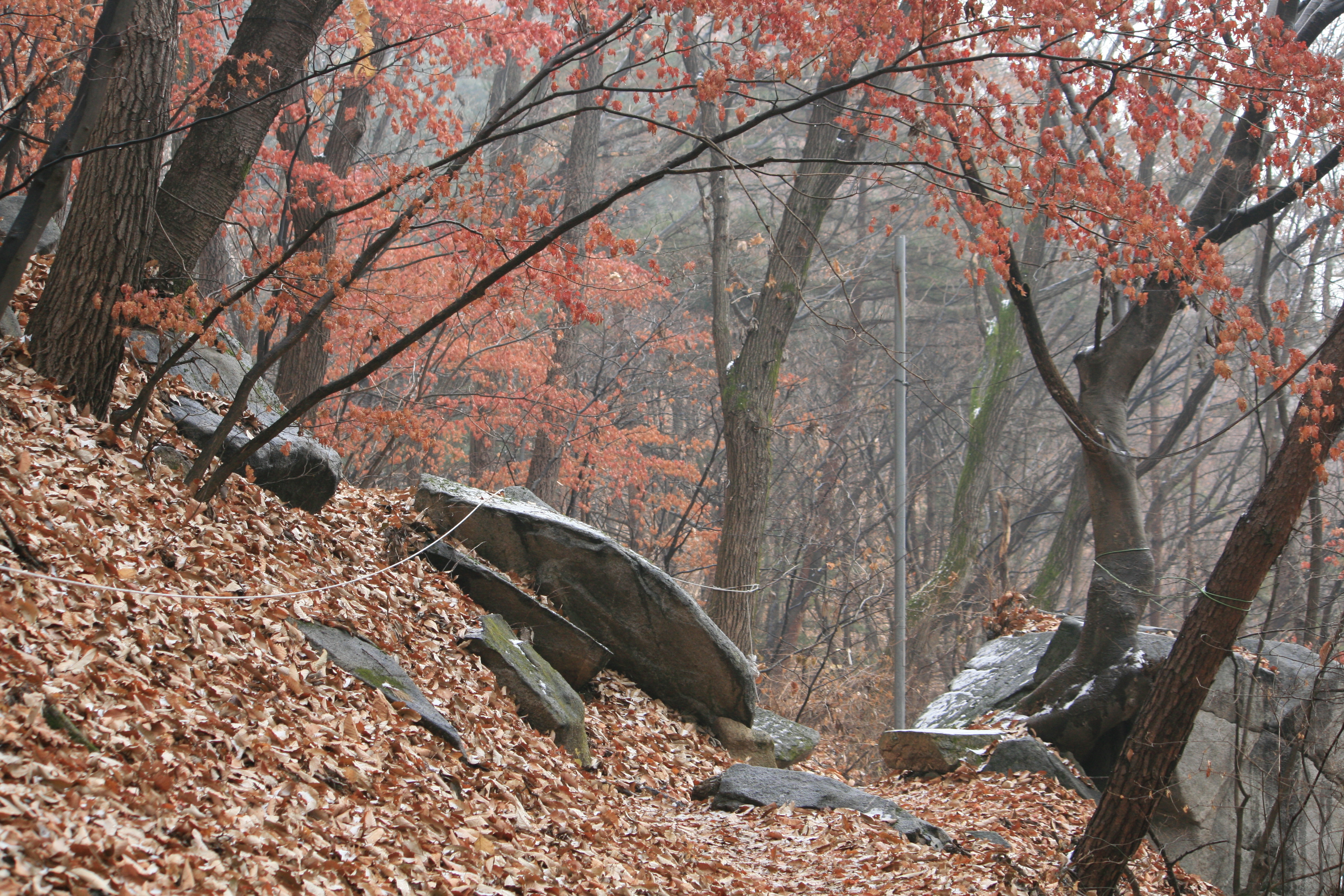 11월 마지막 주말 원주 귀래집 근처에 있는 미륵산을 오후늦은시간 다녀왔다. 지난밤 원주에는 많은 눈이 내렸지만, 귀래쪽은 조금밖에 내리지 않았다. 가을풍경을 연상케 하는 그런 풍광이었다.