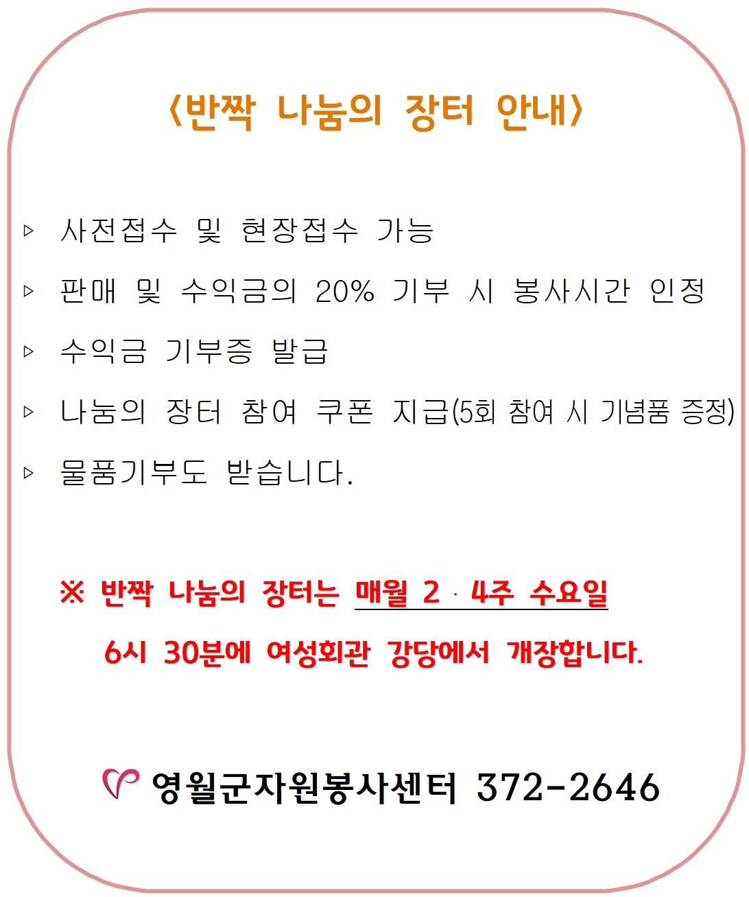 - 문의 : 영월군자원봉사센터 372-2646