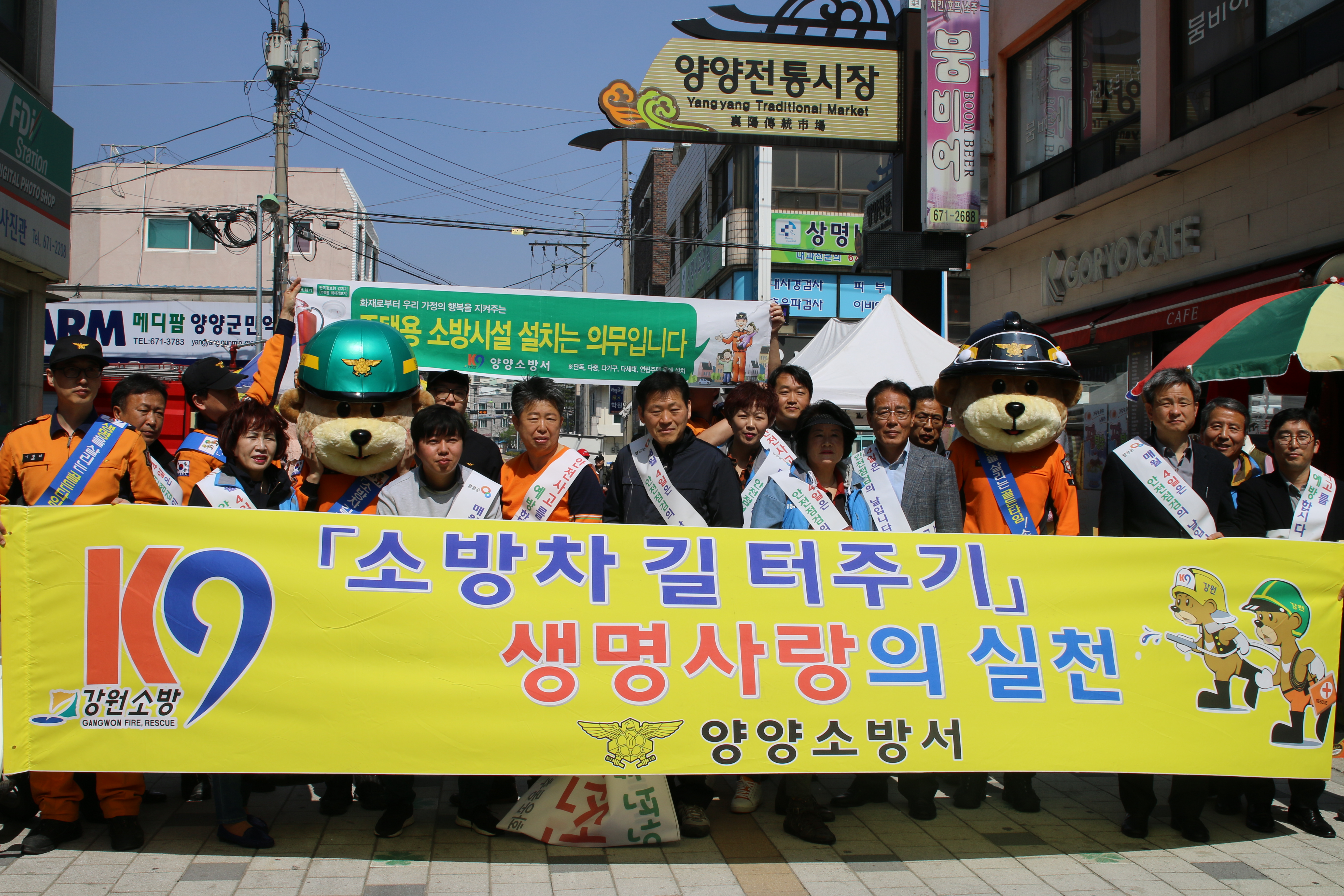 양양소방서(서장 이수남)는 4일 오전 11시 양양 전통시장, 둔치일원에서 소방 40명, 양양군청 30명, 양양군자원봉사센터 10명 등 80여명이 참가한 가운데‘봄철 화재예방 캠페인 및 소방차 길터주기 캠페인’을 실시하였다.