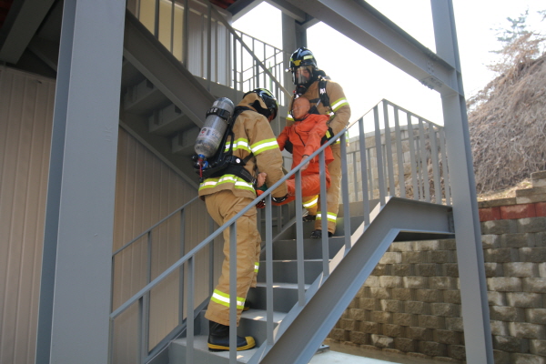 이번 훈련은 원인 미상의 화재로 2층에서 화재가 발생하여 3층으로 연소확대하는 상황을 가정하여 구조대원이 요구조자를 구조하여 외부탈출하고 구급대원은 응급처치와 병원이송을 실시하며 진압대원은 신속하게 화재를 진압하는 상황으로 공동주택 화재에 대한 간접체험을 통해 실제 화재현장에서도 신속히 대응할 수 있도록 진행됐다.
