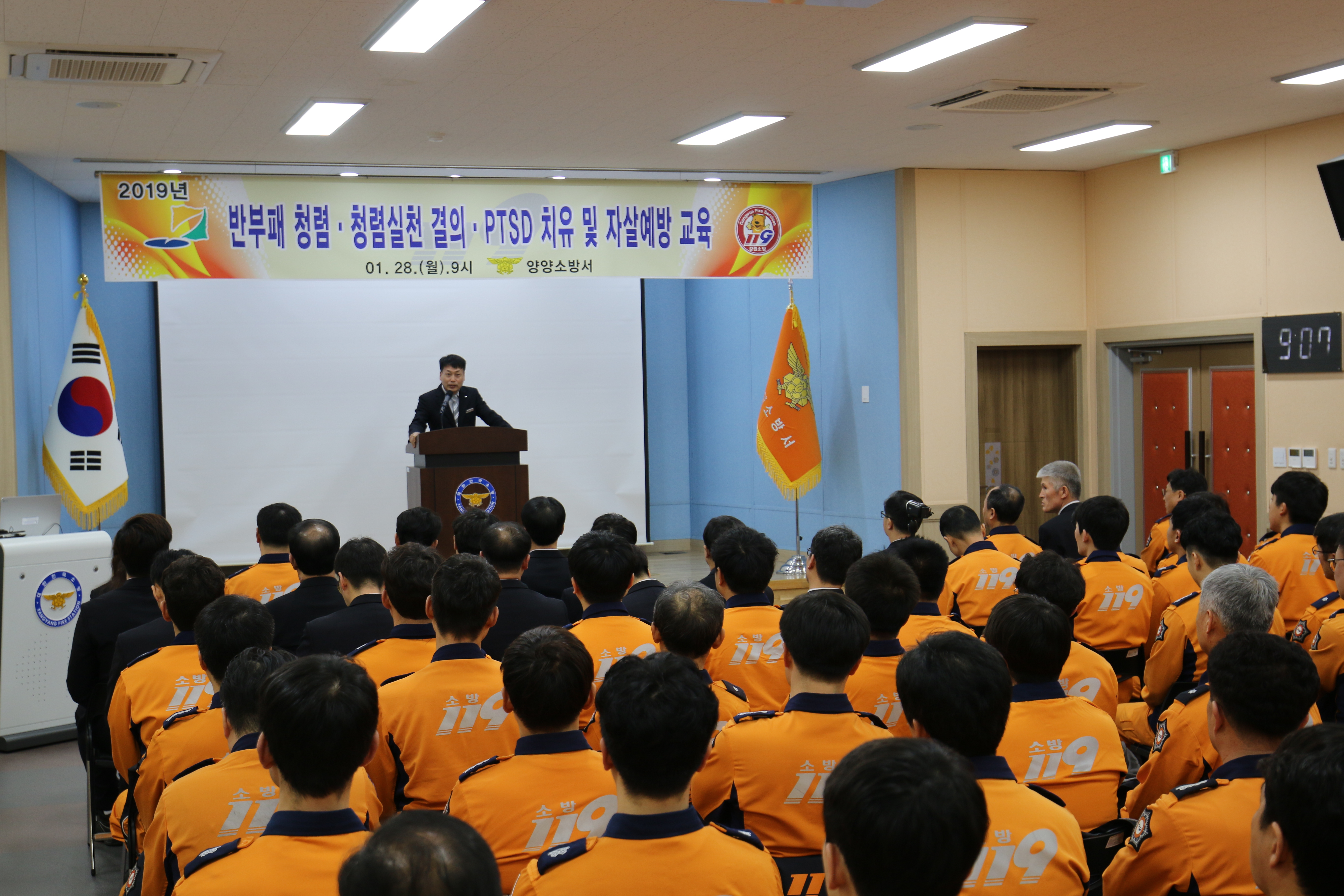 특히 한림대학교 소방심리지원단 심재철 전문상담사가 자리해 소방공무원의 주요 정신건강 문제인 외상 후 스트레스(PTSD)와 이에 대한 예방ㆍ대처법 등을 배우는 시간을 가졌다.