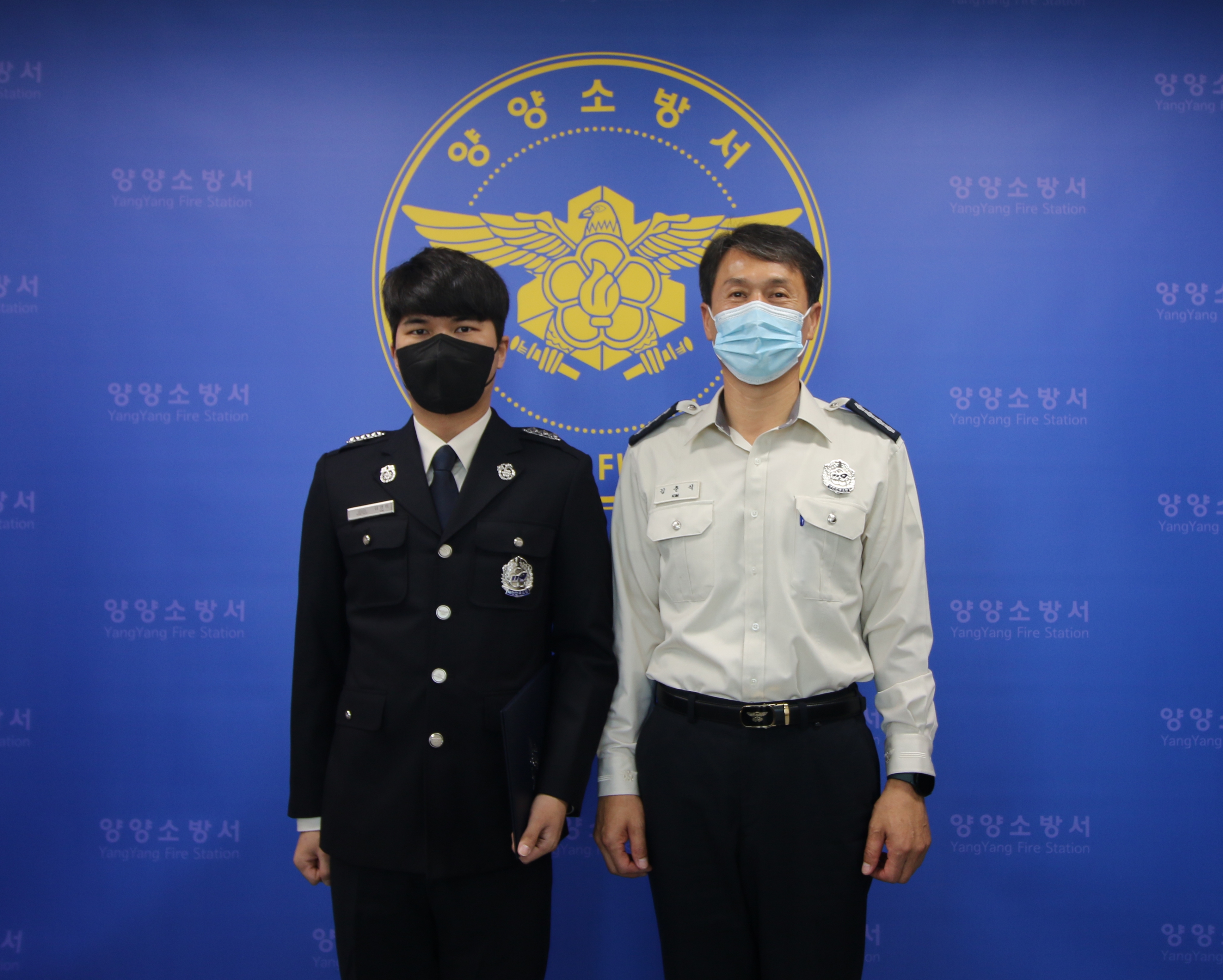 양양소방서(서장 김춘식)은 1일 서장실에서 김영범 소방교 승진자 대한 승진임용식을 가졌습니다.