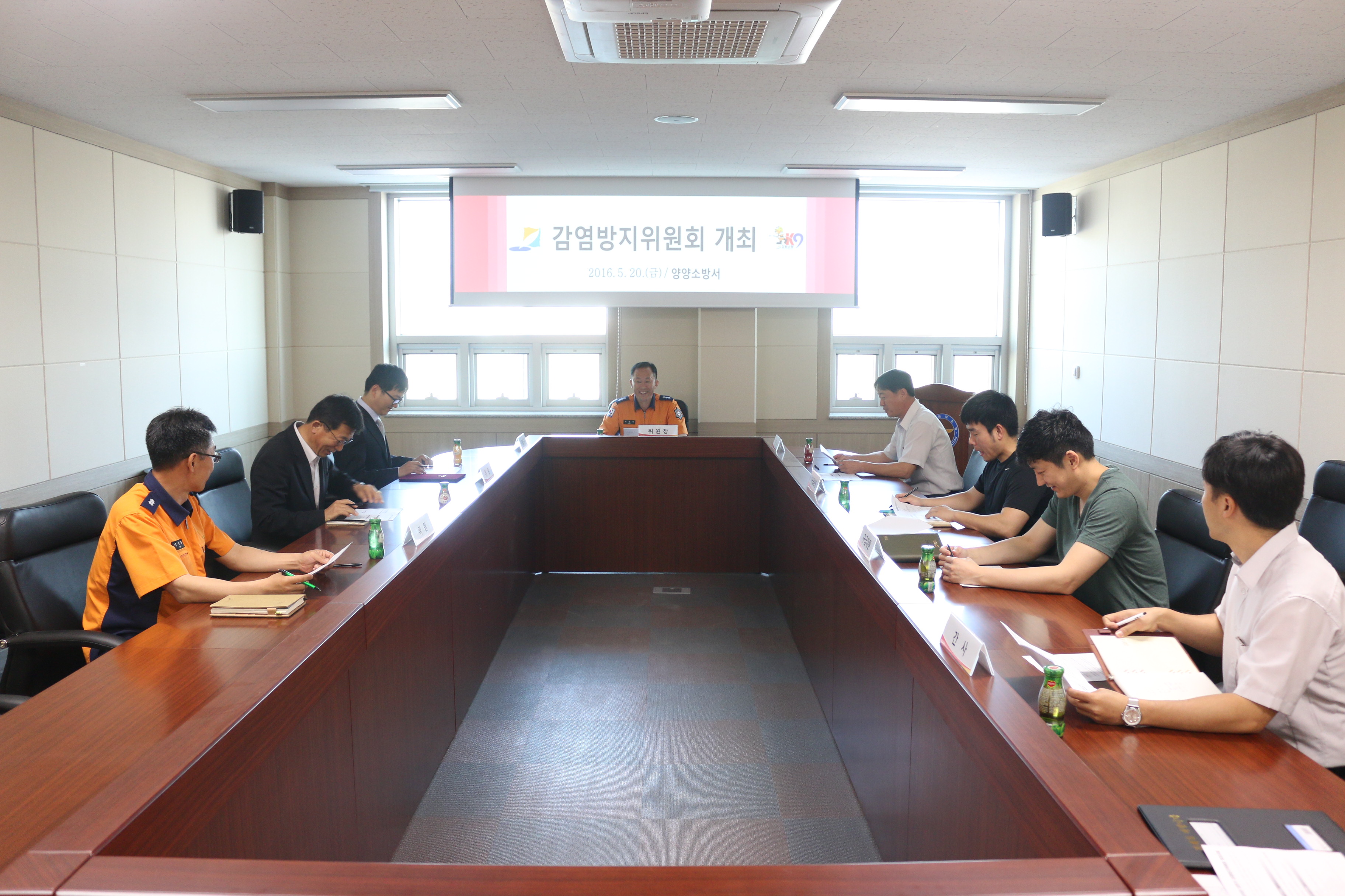 양양소방서(서장 이수남)는 20일 양양소방서 소회의실에서 양양소방서 구급지도의사로 선임된 양원석 지도의사와 구급대원 등 10여 명이 참석한 가운데 구급대원의 안전과 감염방지를 위한 ‘2016년 상반기 감염방지위원회’를 개최했다.