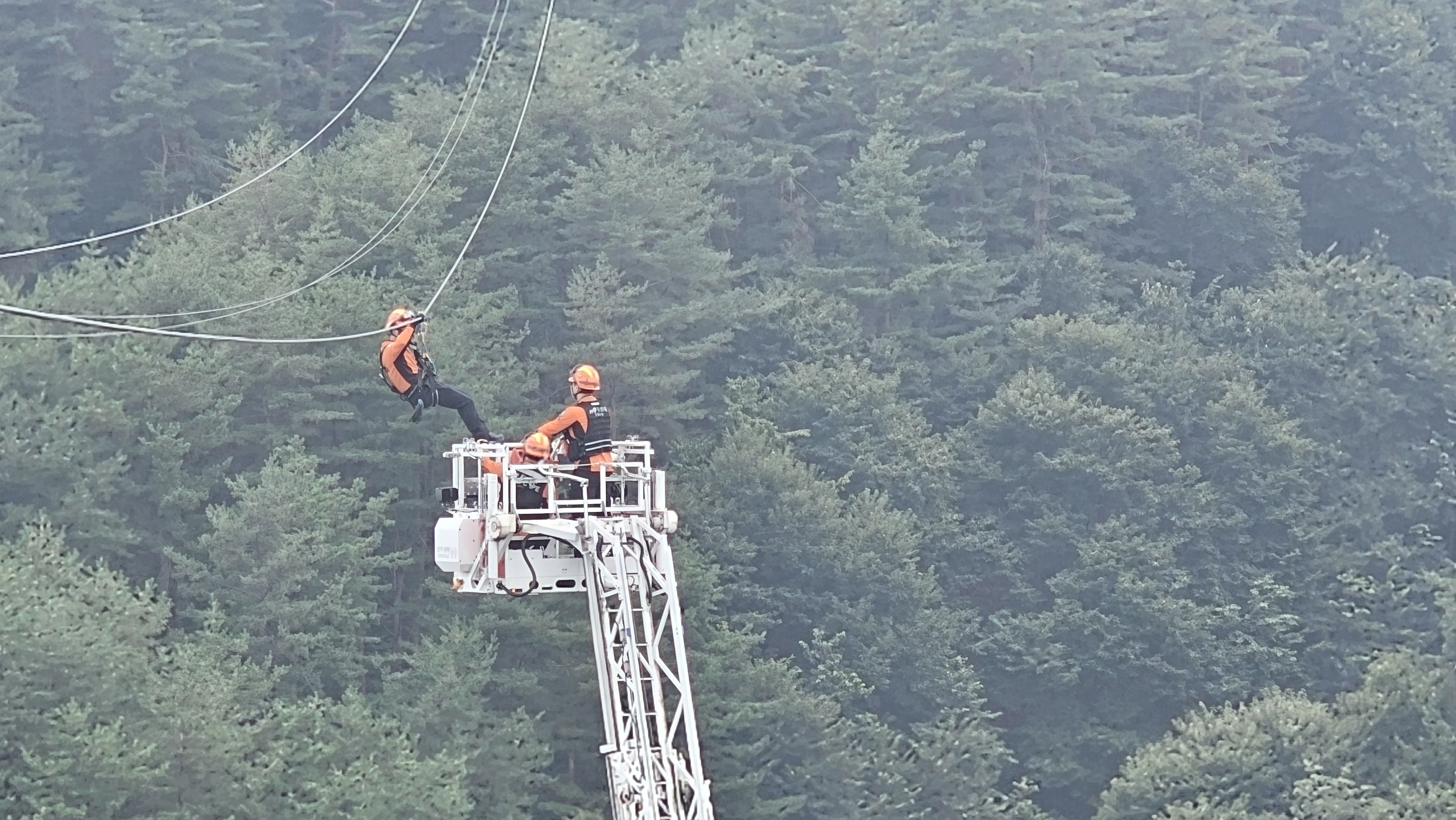 주요 훈련 내용으로는 ▲짚라인 업체의 보조레일을 이용한 기계식 구조, ▲구조대원이 주레일을 이용하여 구조대상자에게 접근하는 접근식 구조, ▲고가차 사다리 전개하여 구조하는 방법 등이였다.